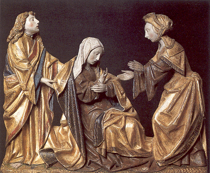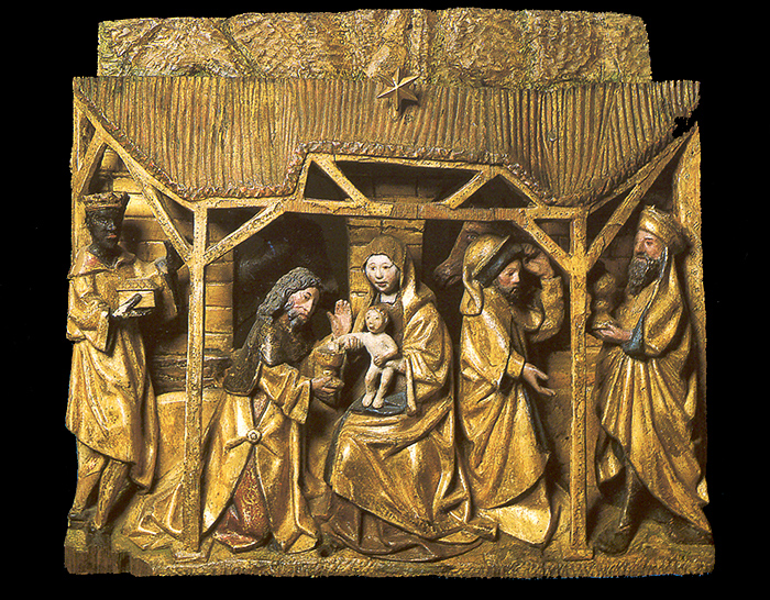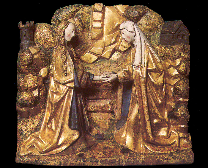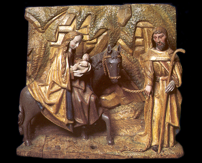 Het retabel is, voor zover is na te gaan, afkomstig uit de kerk van St. Anthonis. Daar werd het weggekocht door baron Van den Bogaerde uit Heeswijk. Vanaf 1910 bevindt het zich in de St. Jan. Het gebeeldhouwde deel van het retabel besttat uit zes compartimenten met scene's uit het leven en lijden van Christus: de boodschap aan Maria, het bezoek van Maria aan Elisabeth, de geboorte, de aanbidding door de wijzen, de vlucht naar Egypte, de terugkeer uit Egypte, de kruisdraging en de bewening. | 65 |