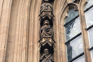 Gipsmodellen voor de boogbeelden in de westtoren (Luipoort), 1880, van elf van de reeks apostelen bleef het gipsmodel bewaard; vier zijn er in de vitrine op de begane opgesteld, zeven op de vitrine naast de entree van de verdieping van de Bouwloods. | 38 |