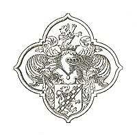 De inscriptie bevindt zich in een tekstband, die op de hoeken vroeger werd doorbroken door vierpassen, mogelijk met wapenschildjes. Alleen van de vierpas linksonder is nu nog een enkel lijntje zichtbaar.