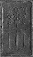 Gezien de dubbele inscriptie is de zerk na driekwart eeuw opnieuw gebruikt. Waarom de linkerrand geen inscriptie bevat, is onbekend. Mogelijk heeft deze kant tegen een muur gelegen, maar dan is zowel de huidige plaats als de laatst bekende plaats (zie hieronder) niet de oorspronkelijke.
