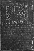 De onderste regel van den grafsteen is doormidden gehakt en daarmede ook het grafschrift verminkt en fragmentarisch geworden.