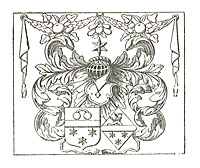 De zerk is erg afgesleten. In de bovenhelft zien we, als boven een tafel, het wapen dat is weergegeven onder een guirlande. Deze guirlande is opgehangen aan drie ringen, waarbij de uiteinden links en rechts bestaan uit een neervallende doek. In het midden van de doorzakkende gedeelten is, op een tekening van de zerk uit circa 1900, een ronde vrucht weergegeven omgeven door klaverblaadjes. Een zelfde versiering hangt vanaf de middelste ring. Een nog oudere tekening beeldt in plaats van vruchten rozetten af. De onderhelft toont onder de als tafel voorgestelde bovenrand een inscriptieplaat, die links en rechts wordt omgeven door twee grote voluten in de vorm van bloemguirlandes. Van de onderste lus van de voluten hangt een lint dat door drie ringen onderaan de rand loopt.