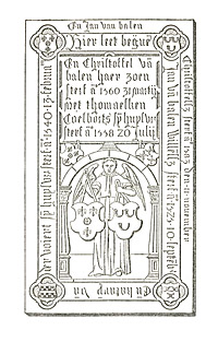 Bij dit grafteeken, in zijn geheel afgedrukt, wil ik alleen aanmerken, dat de necrologe begint bij Jan van Balen Willemsszen en zijn huisvrouw, dat zij vervolgt met Christoffel van Balen en zijn huisvrouw en eindgt met Jan van Balen Christoffelszen. Vergelijk grafsteen no. 5, bl. 8, waar eenzelfde tenant c. a. als hierboven voorkomt.