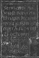 SEPULCHRUM HONORABILIS VIRI, DOMINI RODOLPHI, ERPENSIS, RECTORIS HUJUS ALTARIS, QUI OBIIT ANNO 1624, DIE 23 OCTOBRIS. |