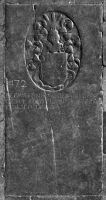 De zerk heeft geen rand. Bovenin zien we een groot ovaal met daarin het wapen. Hieronder bevindt zich de drieregelige inscriptie. De rest van de zerk is leeg gebleven.