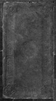 Vooral de evangelistensymbolen in de hoeken zijn erg afgesleten; alleen linksonder zijn de contouren van het symbool nog te zien. De zerk heeft een tekstband met op de hoeken vierpassen, waarin zich de evangelistensymbolen bevinden. In het midden van de zerk zien we een cirkel met een rand die wordt aangegeven door twee gegraveerde lijnen en daarbinnen in een iets verdiept veld een gegraveerd huismerk.