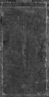 De zerk heeft geen rand en verder ook geen versiering, met uitzondering van een achtregelige inscriptie voor drie verschillende personen. De rest van de zerk is leeg gebleven.