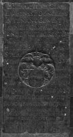 Vooral het wapen is nogal vaag geworden. De zerk heeft geen rand en is helemaal opgevuld met de inscriptie in kapitalen. In het midden zien we een verdiepte cirkel zonder rand waarin zich het wapen bevindt. De regels acht tot en met twaalf van de inscriptie vullen de ruimte naast deze cirkel.