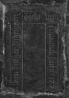 De bovenrand van de zerk is verdwenen. Verder is zij nu dwars gelegd. Het woord 'november' bevindt zich in de linker, nu noordelijke buitenrand.