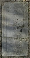 De zerk is in drie gedeelten gebroken door twee horizontale breuken. Verder is het oppervlak enigszins beschadigd.