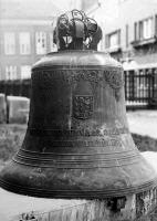 Daarboven het wapen van de stad. De hals is met lofwerk versierd.