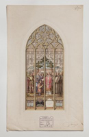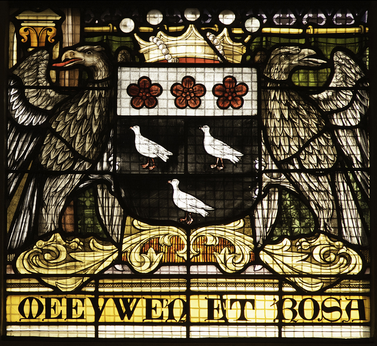 wrong rood en zilver (Prisse). Onderschrift: EDVARDVS VAN MEEVWEN ET ROSA VAN MEEVWEN DONO DEDERVNT Ano 1875. Ontwerp Hezenmans 1872, uitvoering Capronnier 1875. Jkvr. R.M.J. van Meeuwen huwde eerst P.D.E. Macpherson, daarna A.F.J. baron Prisse.12 | 330 |