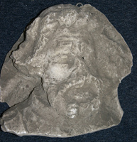 Het oorspronkelijke plastiek was redelijk compleet bewaard gebleven, maar door vele kalklagen plaatselijk dicht geschilderd. Alleen de hoofden van de twee uiterste figuren ontbraken deels. In het midden van het frontaal, doorlopend over de twee blokken tufsteen, was duidelijk het naakte Christuskind herkenbaar, liggend op draperieën of op een kussen. Geheel links, het hoofd ontbrekend, een vrouw die haar handen op de schouder van de figuur naast haar legt. De hoofddoek van de vrouw was in de vorm van een afdruk nog wel herkenbaar. De man naast haar was gekleed in een lange tuniek en stond op een onherkenbaar verweerde console. De man had lang, wijd staand krullend haar en droeg een met geometrische motieven versierde mijter. Hoewel de kin was afgebroken, was de afdruk van zijn baard nog aanwezig. Zijn rechter hand lag op het kussen van het Christuskind, de linker over de schouder van de vrouw rechts naast hem. Deze vrouw, waarvan alleen het gesluierde hoofd was te zien, droeg het Christuskind en plaatste het schijnbaar op het kussen; de vingertoppen van de vrouw waren nog juist herkenbaar onder het kind. Tenslotte was aan de rechterzijde een man zichtbaar, gekleed in een lang gewaad, gesloten met een mantelspeld. De man stond op een onherkenbare console. Zijn rechter hand rustte op het kussen, terwijl hij in zijn linker hand een ritueel mes heeft. Een groot deel van het hoofd ontbrak, maar de baard en een deel van de wild krullende haarlokken was nog wel aanwezig. Een negentiende-eeuws afgietsel van het hoofd van de man bleef echter wel bewaard in het depot van de bouwloods.104 | 120 |