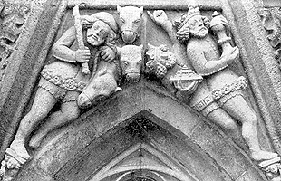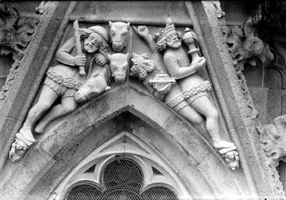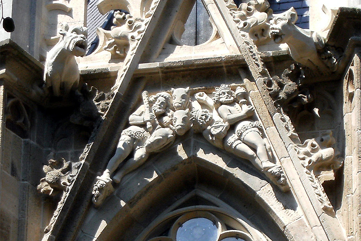 | 105. | Een nauwkeurige tufstenen kopie van Jos Goossens werd in 1931 geplaatst. Een nieuwe kopie in Obernkirchner zandsteen, gehakt door Jacques de Bresser, verving deze in 1984. |