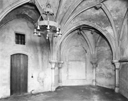 zijn verbouwd tot de huidige Gerfkamer.2 Het bouwhistorisch onderzoek heeft geen enkele aanwijzing opgeleverd omtrent die vermeende oudere kern. Wel is het mogelijk dat de huidge cv-ruimte, van de Gerfkamer afgescheiden door een relatief dikke muur en in 1494 'dat oude kamerke' genoemd, ouder is dan de kamer zelf en in de jaren negentig van de vijftiende eeuw in de nieuwbouw is opgenomen. De bouwgeschiedenis van de Gerfkamer loopt parallel aan die van de Sacramentskapel, de vroegere broederschapskapel. De Gerfkamer was de sacristie van de broederschap en de twee bouwdelen waren rechtstreeks met elkaar verbonden door een tegenwoordig dichtgemetselde doorgang achter het altaar van de kapel. De kapel en de aangrenzende kamer werden dan ook vrijwel gelijktijdig opgetrokken en afgewerkt. Hoewel de sacristie niet vaak wordt genoemd is de bouwgeschiedenis van de kapel goed te achterhalen, mede doordat er veel archiefmateriaal over deze periode bewaard is gebleven. De huidige kapel is gotendeels gebouwd op de plaats waaral een steeds uitgegroeide broederschapskapel was ontstaan. In de rekeningen van de broederschap uit de jaren 1466-1467 wordt duidelijk dat de broeders de loodsmeester van de kerk, 'meester Claes'opdracht hebben gegeven om een ontwerp, 'patroen', voor een nieuwe kapel te maken: 'Meester Claes, meester van der loedsen (-) om des patroens wille van onsen choer, dat hij gemaect hadde (-)'.3 Een van de gezworen broeders, een notaris, vroeg zelfs al toestemming bij de stadsregering om '(-) van der supplicatien van den nyewen choer te maken'.4 Wat dit plan voor een nieuw koor (een nieuwe kapel) precies inhield, is onbekend, maar er is niets van terecht gekomen want het wordt in de rekeningen verder niet meer genoemd. | 4 |