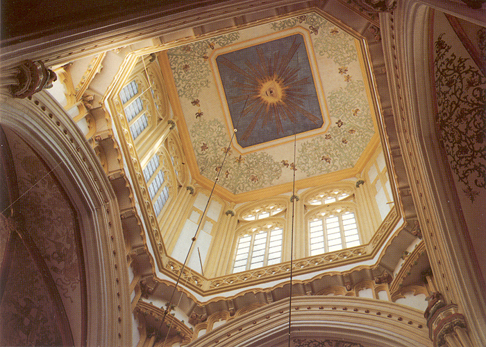 Lopend in de Sint-Janskathedraal ontdekken we al snel het hoogste punt buiten de kerk: de middentoren. Het restant van de eens door vier kruisingpijlers gedragen middentoren is aan de buitenzijde slechts te zien als een koepel. Binnen in de kerk wordt de middentoren afgedekt door gestuct rieten plafond, met in het midden het Alziend Oog, het oog van God.