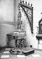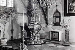 Doopkapel met doopvont uit 1492, vervaardigd door Aert van Tricht. Op het deksel o.m. de doop van Jezus in de Jordaan.