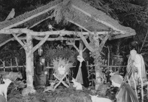 Deze unieke kerststal is eigenlijk in 1953 begonnen, bij het zilveren priesterfeest van plebaan Van Susante. Op dit feest werd de jubilaris een houten eend aangeboden voor de kerststal. Daarna kwamen er méér dieren. Een paardje van de familie Otjens, opgezette honden van de families Derks en Ahsmann. Ieder jaar werd een kanarie in een kooitje opgehangen door de heer Ender. En ook het veulen van bisschop Bekkers vond - opgezet - een plaats bij de stal.