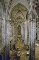 In 1859 gereedgekomen, naar ontwerp van A.van Veggel gebouwde St.Josephkerk, behorende tot het voormalige klooster der Paters Redemptoristen. In schoon metselwerk met hardstenen plint opgetrokken pseudokruisbasiliek met driezijdig gesloten koor; schip en transept onder met pannen gedekte zadeldaken; koor en absis onder met leien gedekt zadeldak met schilden. Aan de zuidzijde van het koor de sacristie met daarboven een driezijdig gesloten kapel onder met leien gedekt zadeldak met schilden. Rond de rest van het koor een kooromgang onder met leien gedekt omlopend zadeldak. In de hoek tussen de sacristie en de kooromgang een polygonaal traptorentje onder met leien gedekt tentdak; op de kruising een in 1960 door arch.H.v.d. Vrede vernieuwd vieringstorentje. Gevels geleed door contreforten en afgesloten met keperboogfries, opklimmend bij de eindgevels van het transept. Per gevelvlak een spitsboogvenster met natuurstenen tracering; lancetten met toot in traptorentje; doubletten met toten en daarboven een omschreven driepas in koor(ronding) en boven de zij-ingangen in de voorgevel; twee doubletten met toten en omschreven driepas, en daarboven omschreven vierpas in kooromgang,zijbeuken en aan weerszijden van de hoofdingang in de voorgevel; tripletten met toten en omschreven driepas met toten, en daarboven omschreven vierpas met toten in eindgevels van transept en boven hoofdingang in voorgevel; omschreven vierpassen met toten in geveltoppen van transept. glas-in-lood ramen in koor, zijbeuken en transept; fijnmazige ruittracering in voorgevel, traptorentje en kooromgang. Voorgevel door polygonale (midden) en overhoekse (zijden) torenachtige steunberen in vijven gedeeld; gevelafsluiting in 1949-1950 door arch.A.Rats gewijzigd; boven de vensters wimbergen (met vierpas boven middelste); hoofdingang omsloten door ezelsrugboog met spitsboogtracering in de zwikken en door trapsgewijs inspringende spitsbogen; twee stel rechtgesloten neo-gotische paneeldeuren met St.Josephbeeld op middenpenant en erboven spitsbogen met twee toten, waarboven een vierpas. Zij-ingangen met twee toten en daarboven een driepas in het spitsboogvormig boogveld boven de deur. Het interieur met bundelpijlers, bladkapitelen, gestucadoorde houten kruisrib- en stergewelven en met spitsboogtraceringen in de boogzwikken en blinde gevelvlakken is sterk geinspireerd op de vormgeving van de St.Jan te Den Bosch. Gewelfschilderingen naar ontwerp van L.C.Hezemans in 1866-1867 vervaardigd door C.Vrensen en in 1905 gerestaureerd door Th.Hermsen; fresco's van J.P.Peeters; polychroomwerk van F.van der Vlist (1885-1886 en 1890); Mariakoor beschilderd door Th.Hermsen naar ontwerp van Fr.Kuypers; overige schilderingen vervaardigd door A.van Bokhoven in 1906 en 1909. Glasramen van atelier Nicolas (1903, 1906-1907 en 1909 naar ontwerp van S.van Bokhoven), van J.B.Capronnier (1891 naar ontwerp van L.C.Hezemans) en L.van den Essen (1950, 1951 en 1956 naar eigen ontwerp en dat van A.van Bokhoven en L.van Hoek). Van de inventaris zijn thans nog aanwezig: de uit 1871 daterende preekstoel vervaardigd door H.Goossens naar ontwerp van L.C.Hezemans, met beelden van Fr.Kuypers en schilderingen van A.Brouwers; de biechtstoelen vervaardigd door H.Goossens naar ontwerp van J.Geraedts; het triomfkruis (1901) vervaardigd door Fr.Kuypers. |