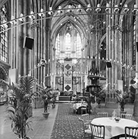 Bossche kunstenaars, nog altijd met ere te worden vermeld.BloembinderijOp 22 augustus 1971 werd de kerk gesloten en aangekocht door de gemeente, overigens zonder een bepaalde bestemming voor ogen te hebben. Een lange rij mogelijkheden kwam voorbij: gebedsruimte voor andere religies, (gemeente)museum, congresfunctie, jongerencentrum, speelkerk, sportzaal, alsook rouwcentrum met mortuarium en columbarium (urnengalerij).In de praktijk werd de ruimte jarenlang gebruikt als opslagplaats van de S.O.S.-rommelmarkt. Tot in 1990 het kerkgebouw werd aangekocht door Jan Karel Konings, die met zijn exploitatiemaatschappij 'Rijksmonument Sint Josephkerk' ruimte zag voor kantoren en winkeltjes, waaronder de bloembinderij 'Oranjerie'. Daarmee was tegelijk de nieuwe naam voor de Redemptoristenkerk geboren. Hoewel in de loop der jaren zo vervallen, dat het er lange tijd naar heeft uitgezien dat het op sloop zou uitdraaien, kon een fatale afloop als eerder met de Sint-Pieter en de Leonarduskerk, op het nippertje worden voorkomen. Al hadden ze het bij het bisdom Den Bosch liever anders gezien. Want daar heeft men het niet zo op al dat profane gebruik van oude kerken, die aan de eredienst zijn onttrokken. In het bisschoppelijk paleis op de Parade spreekt men over de Orangerie dan ook denigrerend van 'een pretcentrum, waar men zich afficheert met dansen op het altaar'. De Orangerie zelf spreekt daarentegen van 'nieuwe belevingen in een magistrale ambiance'. En men moet het de Orangerie nageven, dat de kerkzaal met haar lichtbogen van elektrische kaarsen een sfeervolle aanblik biedt, of dat nu tijdens een receptie of diner, een vergadering, bruiloft of een ander groot feest is. Het kan allemaal in deze 'magistrale ambiance', met een totaalcapaciteit van zo'n 850 bezoekers. Winkeltjes zijn er niet meer, al zijn de biechtstoelen omgebouwd tot vitrines (en één als bar). Kantoren vindt men alleen nog op het koor, maar dan uitsluitend voor eigen gebruik. Voordien in verschillende particuliere handen, is de kerk sinds 1 december 2005 eigendom van de vastgoedmaatschappij 'Elzent' (Eindhoven), maar wordt ze geëxploiteerd door 'Hutten Catering' (Veghel). VoorbijVoor Ferry Boerboom, de locatiemanager van de Orangerie, is 'na veertien jaar horeca-activiteiten, de discussie over het profane gebruik van de kerk helemaal voorbij'. Veel alternatieven zijn er in zijn ogen niet. 'Het is een keuze tussen platgooien en vervangende woningbouw of iets dergelijks, of een expositieruimte, waar wellicht veel gemeenschapsgeld bij moet, of een horeca-functie. Dat laatste mag dan niet iedereen even gelukkig vinden, maar je bereikt er in ieder geval mee dat het gebouw voor de gemeenschap behouden blijft.'Van heiligschennis kan naar het oordeel van Boerboom in geen enkel opzicht sprake zijn. 'Je vindt geen enkel beeld meer in de kerk en ook zaken als orgel, doopvont, communiebank, enz. zijn verwijderd.' Het hoogaltaar en de twee zij-altaren, plus een aantal beelden, gingen naar de H. Hartkerk in Oss. De fraaie kruisweg, ontworpen door de bekende Bossche kunstenaar Hendrik van der Geld, verhuisde, met nog een paar andere beelden, eveneens naar Oss, nu echter naar de parochiekerk van de H. Gerardus Majella. Zelfs de vloer heeft de metamorfose niet overleefd. Na het aanbrengen van 8 km. (!) vloerverwarming werden nieuwe tegels gelegd; zwart als ze zijn passen ze mooi in de kerkambiance, die de Orangerie nog altijd uitstraalt. En wil uitstralen. | 102 |