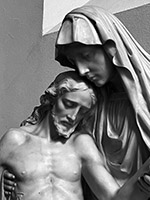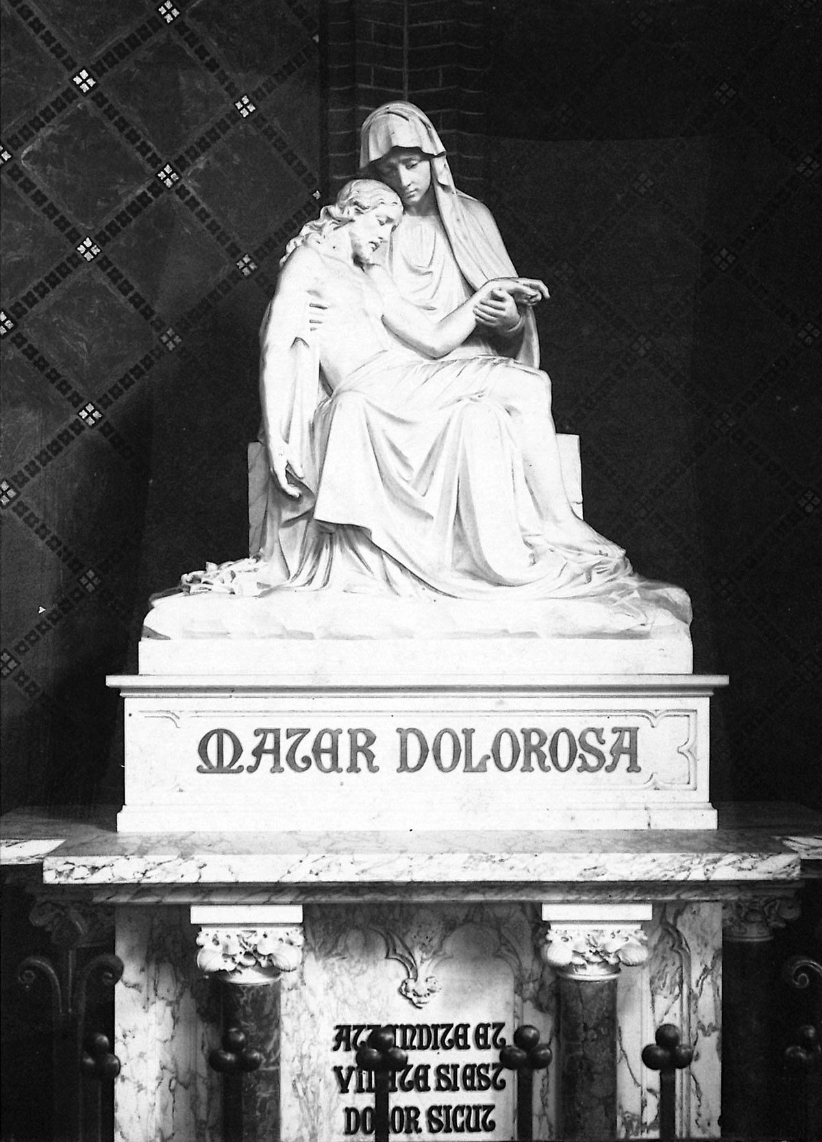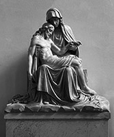 15. Marmeren beelden van de H. Petrus en H. Paulus met zuil en kapital 180 cm hoog. Piëta in wit marmer 125 hoog. St. Jan en Maria Magdalena eveneens in wit marmer 120 cm hoog met bijbehorende zuilen.