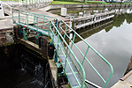 Technische beschrijvingDe sluis is gebouwd volgens Rijkswaterstaatsbestek van 23 augustus 1825. De sluishoofden zijn gefundeerd op een houten paalfundering met slijkhouten, kloosterhouten, zwalpen en een dubbele houten vloer met daartussen metselwerk. Onder de vloer bevinden zich een drietal schermwanden van houten damwand. Het opgaande werk bestaat uit metselwerk van baksteen en hardsteenblokken. De beschikbare schutlengte is 124m en de totale schutbreedte is thans 26,40m (gemeten op Diezepeil). De doorvaartwijdte van de beide sluishoofden bedraagt 7,00m. In 1937 is de houten vloerconstructie tussen het opgaande werk van het benedenhoofd vervangen door gewapend beton. Ook het metselwerk is vanaf NAP + 3,00m door gewapend beton vervangen.Voorts zijn er in plaats van houten puntdeuren stalen deuren gekomen, waarbij de bewegingswerken zijn gemechaniseerd. In 1957-'58 is het metselwerk van het bovenhoofd vanaf NAP + 4,50m vervangen door gewapend beton. De kolk is in de loop der tijd ingrijpend veranderd, oorspronkelijk waren de bodem en taluds bekleed met rijbeslag en steenbestorting. Omstreeks 1850 zijn daar houten beschoeiingen voor in de plaats gekomen. In de periode 1932-'33 zijn deze beschoeiingen vervangen door een betonnen damwand met een betonnen ontlastvloer. De kolkbreedte is toen van 20m naar 27m gebracht. In 1993 zijn deze wanden gereviseerd. In 1944 was de oorlogsschade aan de sluis zelf relatief gering. De bruggen hebben meer te lijden gehad. Het herstel van de schade is in 1955 gelijk ter hand genomen met dat van de beide ophaalbruggen. De beschrijving van de ophaalbruggen over de sluishoofden is te vinden onder het hoofdstuk 'Bruggen'. In 1964 is een echolood geïnstalleerd, waarmee een overschrijding van de diepgang van de schepen kan worden vastgesteld. Huidige functieDe sluis is nog steeds als schutsluis in gebruik.MonumentwaardeDe sluis vormt een belangrijk element uit de periode van de aanleg van de Zuid-Willemsvaart en is daarom van cultuurhistorisch belang. De bijzondere vorm van de schutkolk geeft het object een industrieelarcheologische betekenis. Het ensemble van sluis met bruggen vormt een markant element in het stadsbeeld en heeft cultuurhistorische waarde. | 71 |