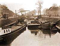 Zonder deze sluis hadden de geallieerden in 1944 de stad niet kunnen bevrijden. Om de handel te stimuleren werd in het begin van de 19e eeuw het kanaal De Zuid-Willemsvaart gegraven. In 1822 werd de eerste spade in de grond gestoken. Politiek overleg vond er toen nog plaats over de juiste route. Oorspronkelijk zou het kanaal om de stad geleid worden, het stadsbestuur echter wilde dat de nieuwe waterweg door de stad gegraven zou worden. Pas in 1825 werd er beslist over het tracé binnen de stadsmuren. Een klein jaar later, op 24 augustus 1826, de verjaardag van koning Willem I, werd het naar hem genoemde kanaal plechtig geopend. Een groot feest was het niet in de stad: vele Bosschenaren, betrokken bij de overslag van goederen van schepen op karren in de Haven, raakten werkeloos. Bij het graven van het kanaal dwars door de stad, werden slechts een klein aantal huizen, bij het Hinthamereind gesloopt. Wel verdween de waterpoort bij Sluis 0: daar kwam voordien de rivier de Aa via de Kleine Hekel de stad binnen. Eveneens viel de oostelijke toren van de waterpoort bij de Haven onder de slopershamer. Bij een verbreding van het kanaal in 1880 verdween ook het vijfde bastion van de Citadel. Het bleek dat er een sluis nodig was, daar waar het kanaal de stad binnenkwam. Den Bosch was nog steeds vestingstad en door de aanleg van een sluis (i.p.v. de oude hekel) kon het inundatiewapen van Het Bossche Broek tegengehouden worden. Normaliter stonden de sluisdeuren dan ook gewoon open: een echte functie in het scheepvaartverkeer zou de sluis pas later krijgen. Dat is er ook de oorzaak van dat deze Bossche sluis niet thuishoort in de serie sluizen van de Zuid-Willemsvaart. Het lag vóór de eerste sluis en kreeg dus als naam: Sluis 0. In de negentiende en twintigste eeuw nam het scheepvaartverkeer toe. Zeilschepen (bij windstilte getrokken door menskracht) maakten plaats voor motorboten. Maar ook de stad groeide. Ten noorden van de binnenstad verrees de nieuwbouwwijk De Muntel. Plannen werden er in 1928 gemaakt om het kanaal ten noorden van deze nieuwe wijk om te leggen: langs de Willem van Nassaulaan, Geldersedam en De Bossche Pad, om vervolgens weer bij het oude tracé aan te sluiten. Aangezien de gemeente weigerde een bijdrage van vier ton beschikbaar te stellen, verdween het plan in de la. Toch moest er wel degelijk iets gebeuren om het groeiende scheepvaartverkeer tegemoet te komen. Daarom werd na het niet doorgaan van de omleidingsplannen het kanaal verbreed. Vooral was dit te zien bij Sluis 0: de taluds verdwenen en maakten plaats voor een steile kade. Sluis 0 speelde een belangrijke rol bij de bevrijding van de stad in oktober 1944. Alle bruggen over de Dieze en Zuid-Willemsvaart waren opgeblazen en de geallieerden konden slechts over de sluisdeuren zelf de andere zijde van het kanaal bereiken. Bij deze aanval, gesteund door vlammenwerpers, werd een deel van de bebouwing aan de zuidzijde van de sluis geheel verwoest. Na de oorlog kwam er weer eens een nieuwe brug over de sluis. En na de baileybrug en de basculebrug kent men er thans de derde brug sinds vijftig jaar. Vóór de aanleg van het kanaal werd er reeds gesproken over het om de stad heenleggen van het kanaal en honderd jaar later opnieuw. Beide malen zijn deze plannen niet gerealiseerd. Maar de laatste dertig jaar is de Zuid-Willemsvaart opnieuw sterk in discussie geraakt. Een verbreding binnen de stad en het verhogen van de bruggen tot zeven meter? Of toch liever een omleiding om de stad heen. Recentelijk werd de beslissing uit Den Haag meegedeeld: er wordt omgeleid. In het decennium van de 21e eeuw moeten deze plannen gerealiseerd zijn. Dan ligt de Zuid-Willemsvaart voortaan langs de A2, tussen Den Bosch en Rosmalen. En wat er dan gaat gebeuren met 'de kanaal' (zoals Bosschenaren het kanaal noemen)? Dan zal het stadsbeeld zeker opnieuw veranderen. |