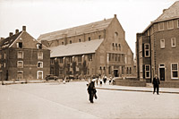 Een rustige villawijk lijkt het wel, als je naar de ene zijde van de Bethaniestraat kijkt. Aan de andere zijde bevindt zich een groot gebouw. Laten we eens kijken achter de voorgevel van: Bethaniestraat 4. De middeleeuwse samenleving was hecht georganiseerd. Iedereen was wel lid van een ambachtsgilde, een broederschap of een schuttersgilde. Zo kende de stad een Broederschap van Sint-Jacob die ondersteuning bood aan pelgrims op weg naar Santiago de Compostella, ondermeer middels een gasthuisje. Maar zij deden méér: een spel over 'die legende van St.-Jacob apostel' werd in 's-Hertogenbosch en elders opgevoerd. Vanuit de stad trokken vele pelgrims in zuidelijke richting. Ondermeer gebeurde dat als een boetedoening wegens een doodslag. In het zogenaamde Bosch' Protocol staan enige van deze boetebedevaarten genoteerd uit de vijftiende eeuw. De Broederschap bezat ook een kapel. Paus Martinus V had in 1430 toestemming gegeven deze te bouwen. Daadwerkelijk werd de kapel in de vijftiende eeuw gebouwd op het terrein 'De Wijnmolenberch', vlakbij het Hinthamereinde en vlakbij het door Reinier van Arkel in 1442 gestichtte gasthuis. De kapel stond er toen kennelijk al, want krachtens zijn testament schonk Reinier acht gouden peters (een geldstuk) ten behoeve van dit kerkgebouw. In 1569 werd de stad in vier verschillende parochies verdeeld. De éne parochie (de Sint-Jan) kreeg er drie bij: de kloosterkapel van de Kruisbroeders en de kapellen van twee broederschappen, die van St.-Petrus en St.-Jacobus. Zelfs het stadsbestuur bemoeide zich met deze verdeling, omdat toen tevens werd bepaald dat iedereen die zich in de nieuwe parochiekerken liet dopen voortaan geboren Bosschenaar was; voordien gold dit alleen voor de dopelingen van de Sint-Jan. Slechts zestig jaar heeft de Sint-Jacob als parochiekerk gefungeerd; in 1629 kreeg zij een militaire bestemming. Drie eeuwen bleven militairen het gebouw bevolken en richtten het voor eigen doel in. Er kwamen ondermeer verdiepingen in het gebouw. In de twintiger jaren verlieten de soldaten het gebouw en in het grote lege pand vestigde zich het Provinciaal Genootschap van Kunsten en Wetenschappen in Noord-Brabant. Er kwam een museum en een wetenschappelijke bibliotheek. Zestig jaar later kwamen er veranderingen: de bibliotheek verdween naar Tilburg (in de Universiteitsbibliotheek) terwijl het museum een riante huisvesting in de stad zelf kreeg, in het Gourvernement in de Verwersstraat. De bouwhistoricus en de stadsarcheoloog werden de nieuwe gebruikers van het vijftiende eeuwse pand. In het voormalige koor van de Kerk vestigde zich De Azijnfabriek met haar lunchconcerten en literair café. Het is een combinatie van cultuur en historie die goed past in de cultuur-historische visie van het stadsbestuur. Het ligt in de bedoeling dat de afdeling Archeologie en Bouwhistorie een grotere uitsraling krijgt naar de Bossche bevolking en andere geïnteresseerden toe. Daar kan iedereen alleen maar verheugd over zijn. |