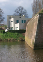 PilarenHet huidige woongedeelte was oorspronkelijk in verschillende vertrekken opgedeeld. Derks: "We hebben er lang over geprakkiseerd wat we zouden doen. We wilden het zo ruimtelijk mogelijk houden." In de woonruimte beneden is nu het zitgedeelte aan de voorzijde van de woning. Achter zijn eetkamer en open keuken. Zit- en eetkamer zijn van elkaar gescheiden maar tegelijkertijd verbonden door een open ruimte binnen vier stalen pilaren in het midden, waar je binnenkomt. Wat nu eetkamer is, was vroeger wachtkamer. Gerard Derks: "Ik weet nog dat ik hier als kind zelf kwam. Als je naar buiten keek, zag je boven op de wal soldaten wachtlopen. Heel indrukwekkend was dat. Het Rijksarchief was toen nog een kazerne." In samenspraak met de gemeentelijke monumentencommissie heeft Derks het pand helemaal opgeknapt. De symmetrie in de raamkozijnen is gehandhaafd, maar legdewel beperkingen op aan de indeling van het pand. Derks heeft lang gezocht naar een praktisch alternatief voor de versleten zware stalen kozijnen uit 1932. "Uiteindelijk is samen met de leverancier een model ontwikkeld, van eenzelfde stijl en massa, maar dan aluminium. Enkele jaren geleden zijn ook de vocht doorlatende muren geïsoleerd." Granieten trapDe Nieuwe Zakelijkheid komt in het pand ook tot uiting in een zware en brede granieten trap, met stevige smeedijzeren leuning. Deze leidt naar de bovenverdieping, waar de vroegere beheerderswoning is. Het glas-in-lood-raam van C. van Stiphout in het trappenhuis, uit 1933, wil Derks nog laten restaureren.Nog een trap op en je staat op het hooggelegen dakterras, waar pas goed zichtbaar is in welke historische omgeving Het Witte Huis staat, aan het eind van een op de vestingmuur doodlopend stukje Citadellaan. In de oksel, zoals Gerard Derks het zelf noemt, tussen twee bastions, torent het pand uit boven de vestingwal van de Citadel en de hele directe omgeving. "Een van de mooiste ervaringen beleef je hier op het terras in de nieuwsjaarsnacht. Aan alle kanten vuurwerk. En je ziet vanuit de hele stad een rookdeken omhoog trekken." Om zonder kinderen in te wonen is het pand met zijn 2500 kuub wel erg groot. Het in 1951 aangebouwde deel wordt dan ook verhuurd als kantoorruimte, sinds Derks' eigen bureau eruit groeide en verkaste. Mieke Derks: "Ik leg hier heel wat afstanden af. Wat ik nog mis, is een gezellige open haard. Maar die komt er niet. Er mag geen schoorsteen boven het dak uitsteken." Een huis dat héél oud is, heeft van zichzelf al iets warms, vinden beiden. Gerard: "Dat van ons straalt een stukje afstandelijkheid uit. Als ik de hoek om kom en ons huis zie, denk ik ook weleens: dit is niet van ons. Het is dan ook een rijksmonument, het is ons huis niet." Mieke weer: "Maar binnen wél. Ik heb er nooit spijt van gehad, dat we hier zijn gaan wonen." |