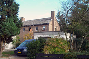 Zadeldak onder flauwe hoek gedekt met verbeterde Hollandse pannen. In de zijgevels zijn aan beide zijde uitgebouwde schoorstenen geplaatst. Ter hoogte van de goot zijn de zijgevels voorzien van een horizontale decoratie in het metselverband. Ter hoogte van de boven- en onderzijde van de kleine vensters in de eerste bouwlaag lopen twee lijsten; een effect in het metselverband.