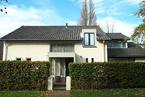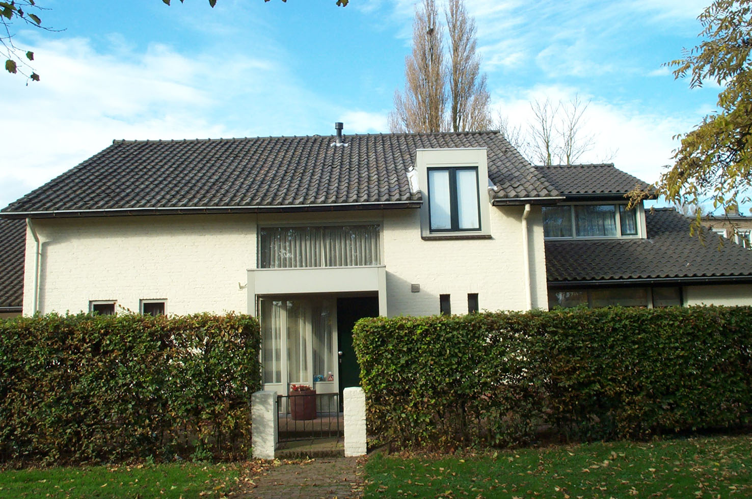 Vrijstaande woning met garage. Het hoekpand is in de loop van de jaren uitgebreid met aanbouwen aan zowel de linker- als de rechterzijde. Door het gebruik van overeenkomstige materialen is toch een goede eenheid ontstaan. De toevoegingen zijn van verschillende hoogte en volume. Het linker deel is gedekt met een zadeldak van ongelijke vlakken. Het middendeel heeft een zadeldak onderbroken door een Vlaamse dakkapel in strakke vormen uitgevoerd. Het rechter deel is eveneens uitgevoerd met een zadeldak maar hier is een soort attiek toegevoegd, ook met een zadeldakje. De dakbedekking is uitgevoerd in grauwe pannen Hollands verbeterd. De bakgoten steken iets over en zijn uitgevoerd in zink. De toegangspartij is uitgebouwd en heeft een luifel.