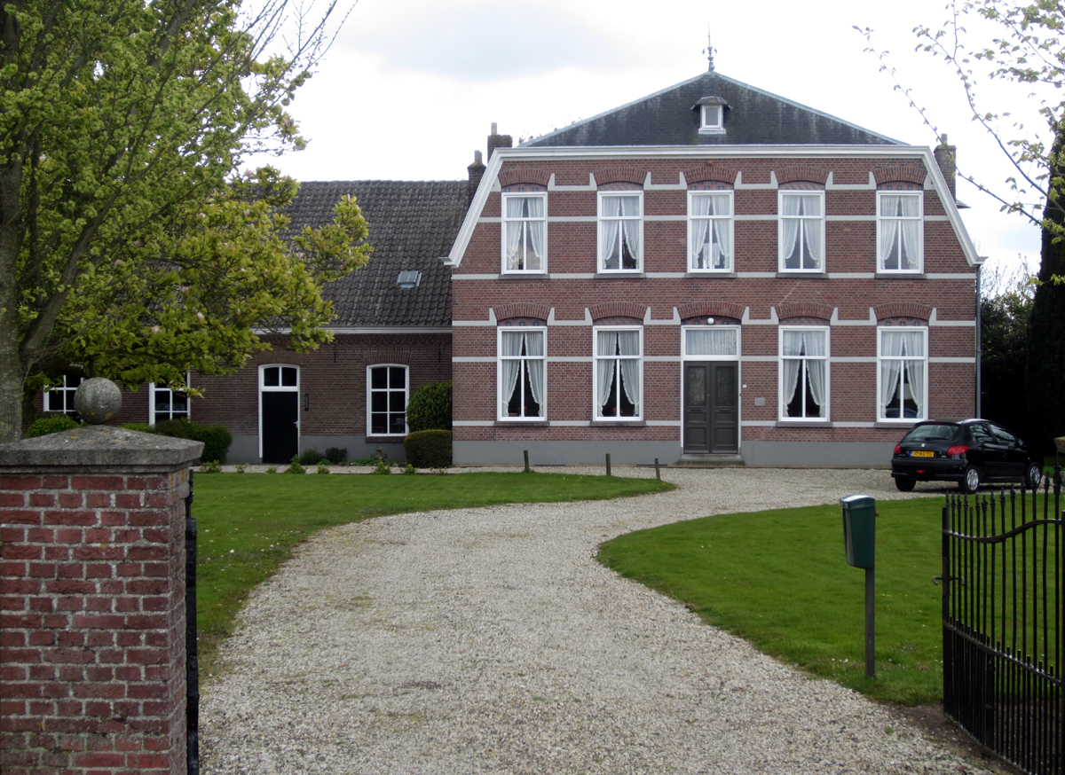InleidingBoerderij, met grupstal. Het woongedeelte is in 1906 opgebouwd in een Eclectische stijl en intern verbonden met de grupstal. Deze is het enige restant van een, waarschijnlijk negentiende-eeuwse, voorganger. De bekapping van de stal is grotendeels vernieuwd. De boerderij werd gebouwd in opdracht van de heer Godschalx.Het geheel is gelegen op een groot terrein met een buiten de van rijkswege geldende bescherming vallende tuinaanleg met ijzeren hekwerk aan de voorzijde en een erf aan de zijkant en de achterzijde. Op het erf bevinden zich nog verscheidene opstallen die alle dateren van omstreeks 1950. Ook deze vallen buiten de van rijkswege geldende bescherming. De oude bijgebouwen moesten na in 1944 opgelopen oorlogsschade grotendeels gesloopt worden. OmschrijvingGedeeltelijk onderkelderde boerderij op rechthoekige grondslag van één bouwlaag met kapverdieping onder een afgewolfd mansardedak met Maasgedekte leien. De gevels zijn opgetrokken uit in kruisverband gemetselde machinale baksteen. De symmetrische opgebouwde voorgevel telt vijf traveeën en wordt geleed door een gecementeerde plint en speklagen. Vensters en deur zijn getoogd met een segmentboog en hebben op de begane grond een metseldecoratie in de boogtrommels. De vensters hebben T-ramen en zijn voorzien van hardstenen onderdorpels. De centraal gelegen ingang heeft een vleugelpaneeldeur met glaspanelen en gietijzeren sierroosters daarvoor. Naast de ingang bevindt zich een kleine gedenksteen voor de eerstesteenlegging.In het dakschild aan de voorzijde bevindt zich een kleine dakkapel met puntdak. De vensters in de zijgevels en de achtergevel zijn nog grotendeels oorspronkelijk; alleen de vensters van de keuken zijn gewijzigd. Intern wordt het pand doorsneden door een centrale gang die betegeld is met marmeren plavuizen en een lambrisering heeft met een imitatie-marmer beschildering. Aan weerszijden van de gang bevinden zich de woonvertrekken met kamers en suite, een achterkamer en een grote keuken met bijkeuken. De kamers op de begane grond zijn voorzien van stucplafonds met zowel florale als geometrische ornamentiek. De oorspronkelijke detaillering is nog geheel aanwezig met onder meer houten paneeldeuren, schuifdeuren, natuurstenen schouwen, ventersbanken en -luiken. Via een trap met geornamenteerde ijzeren balusters zijn de slaapkamers op de kapverdieping bereikbaar. Deze bevatten verder geen bijzondere detaillering. Aan de achterzijde zijn de keuken en bijkeuken gelegen. De keukenvloer is belegd met gele en zwarte tegels. De oorspronkelijke stookplaats met houten omlijsting is nog bewaard. Via de keuken is de van troggewelfjes op ijzeren profielen voorziene kelder bereikbaar. Deze heeft een met rode plavuizen belegde vloer. De grupstal is bereikbaar via de bijkeuken van het woongedeelte en staat hier haaks op. Het is een éénlaags, rechthoekig bouwlichaam met gevels van in kruisverband gemetselde baksteen onder een met blauwe verbeterde Hollandse pannen gedekt zadeldak. De oostelijke kopgevel is deels gepleisterd. De stal heeft aan de voorzijde licht getoogde vensters met zesruits ramen en een opgeklampte houten deur met bovenlicht. In de kopgevel bevinden zich de inrijpoorten. Aan de achtergevel is het pleisterwerk verwijderd en het metselwerk opnieuw gevoegd en geïmpregneerd. Verder zijn hier gietijzeren boogramen en smeedijzeren steekankers aangebracht. De stal heeft in de lengte drie beuken: twee gruppen met stenen ruiven en een centrale handpomp scheidt de stal van het woonhuis en verbindt deze met de bijkeuken. De zoldering van de stal wordt gedragen door twee rijen houten standvinken op gemetselde voet. Intern zijn nog de oorspronkelijke paneeldeuren bewaard. De dakspanten, bekapping en pannen van het stalgedeelte zijn na de oorlog en in 1997 gewijzigd. WaarderingDe boerderij met grupstal is van algemeen belang. Het gebouw heeft cultuurhistorisch belang als voorbeeld van de sociaal-economische ontwikkeling van de landbouw in het rivierengebied en als voorbeeld van de typologische ontwikkeling van de boerderij met bijgebouwen. Architectuurhistorisch is het pand van belang vanwege de ornamentiek en de toegepaste eclectische stijlmotieven en vanwege de bijzondere samenhang tussen exterieur en interieur. De boerderij is belangrijk vanwege de gaafheid van het in- en exterieur en is als zodanig zeldzaam. |