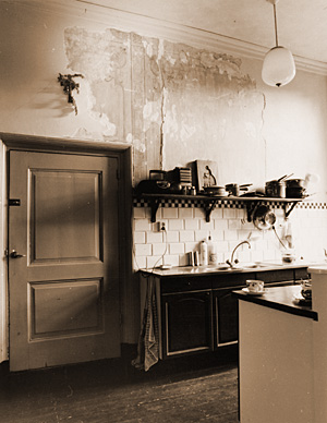 In de fraaie rij gevels die de Diezekant in Engelen markeert, domineert het voormalige meisjespensionaat OLV van Lourdes, niet ten onrechte wel 'het hoge huis aan de Dieze' genoemd. In 1953 opgeheven herinnert een beeldje van Onze Lieve Vrouw van Lourdes, omgeven door een stalenkrans van lampjes, nog altijd aan die periode, evenals de gevelsteen die behalve de naam ook het geboortejaar reproduceert: 1828. Maar boven de brievenbus verraadt de eigentijdse mededeling '2 x BD en 6 x Stadsblad' de huidige bestemming van deze indrukwekkende 'bouwdoos': zes appartementen. Waarvan twee bewoners geabonneerd zijn op het Brabants Dagblad. Pater Matthias Wolff, jezuïet, had in 1824 in Amersfoort de 'Congregatie van de zusters der H. Maagd Maria, genaamd het gezelschap van Jezus, Maria, Jozef opgericht, in de wandeling de 'Zusters van JMJ'. Hij 'leverde' in 1826 de eerste twee zusters ten behoeve van de pretentieuze plannen van pastoor J. van Hooff van Engelen voor een groot meisjespensionaat, dat 'une Education Chrétienne' voor meisjes uit de hogere standen beoogde. Het deftige pensionaat, 'in een gezond en zeer aangenaam Dorp gelegen', afficheerde zich als 'Pensionnat de Demoiselles'. Frans was dan ook de voertaal en de zusters werden met Mère, later Soeur, aangesproken. 'Het doel onzes Instituuts is, der jonge Jufvrouwen de eenvoudigheid der zeden in te boezemen, haar hart tot de deugd te vormen en haren geest door de studie der noodige en nuttige wetenschappen te versieren.' Aldus zegt de prospectus uit 1829, die voorts verzekert: 'De Kweekelingen zullen nimmer zonder opzigt zijn, dewijl de waakzaamheid der Institutrices zich uitstrekt op alle plaatsen en in alle oogenblikken.' Het milieu van de pensionaires wordt misschien wel het best geïllustreerd door het feit dat veel later de vader van een der meisjes met eigen vliegtuig naar Engelen placht te komen om zijn dochter te bezoeken. 'Als hij in Engelen wilde landen moest eerst het prikkeldraad uit het weiland worden gehaald.' Was Engelen aanvankelijk een 'succursaalhuis' - zeg maar dependance - in 1840 werd het klooster 'Materhuis'. Zij het niet voor lang, want in 1871 verhuisde de algemeen overste, Mère Supérieur met haar staf naar Toen de hele blindenzorg ('BLIZO') eind jaren zestig van Engelen naar de Steffenberg in Vught verhuisde, strandden pogingen om er gastarbeiders van de conservenfabriek Jonker Fris uit het naburige Heusden te huisvesten op verzet van de bevolking. Een verzet dat kracht werd bijgezet door het pand volledig te ontmantelen en leeg te plunderen. De desolate toestand waarin het sindsdien verkeerde weerhield enkele jaren later (1975) bouwlnindigenlarchitecten Paul Kooijman en Paul Huddleton Slater er niet van het hoge huis aan de Dieze te kopen om er appartementen in te maken. De eerste kennismaking van Paul Kooijman met het gebouw dateert van 1973. 'Toen ik van de overkant van het water op Engelen keek vroeg ik me af: wat is dat voor merkwaardig pand? Ik hoorde dat het leeg stond en dat de gemeente niet wist wat zij er mee aan moest. Later ben ik gaan kijken en omdat ik veel vrienden in de beeldende kunst had, ontstond bij mij het idee om er, samen met het Bosch Kunstenaarscollectief, ateliers in te huisvesten.' Met alle aan- en bijbouwen was het een gigantisch complex, uiteindelijk té complex voor Kooijmans ideeën. In samenspraak met zijn collega Paul Huddleton Slater werd de zaak hanteerbaarder. 'Als we ons eens beperkten tot de villa, zoals de gemeente dat noemde, het oudste deel van het pensionaat. Maar hoe? Aan de hand van een oude tekening voor de aanleg van centrale verwarming hebben we de oude structuur van het gebouw nog zo'n beetje kunnen vaststellen met daarin centraal de gang, die van voor tot achter het zestien meter diepe pand doorsneed. Maar tegelijk werd ons duidelijk dat we die stuctuur moesten aantasten door achter de ingang een trappenhuis aan te brengen dat de voorgenomen appartementen bereikbaar moest maken. Maar verder was van de oude structuur niet veel meer te bespeuren dan in het souterrain, waar nog restanten waren van de voorraadkamers en de voetbakken van de wasgelegenheid die de zusters er hadden gehad, en op de bovenste verdieping waar de booglijnen die de vroegere chambrettes overwelfden, zich nog lieten herkennen.' Twintig jaar heeft Paul Kooijman eraan gewerkt, samen met mevrouw M. Wijns die in de voetsporen was getreden van haar al na een paar jaar overleden man, Paul Huddleton Slater. En nadat Paul Kooijman vier jaar geleden naar Bokhoven verhuisde heeft zij zich, samen met haar tweede man P. Monasso, met hernieuwde inspanning geworpen op de vervolmaking van wat haar levenswerk is geworden. Aan de Diezekant profileert zich thans weer heel nadrukkelijk een indrukwekkende gevel, heel symmetrisch met een veelheid van ramen in vijf bouwlagen, waartegen het kleine bordes met de twee steile trapjes wat iel, maar onverminderd authentiek aandoet. Daar binnengaand bevindt zich rechts het appartement van mevrouw Wijns, een kamer-en-suite van bovenmodale afmetingen, waarin de oude zaalhoogte bovenzijds en de houten vloeren onderzijds de voorgeschiedenis van het gebouw representeren, samen met een oude kastenwand in de voorkamer, waarin overigens een tv-toestel de historie even onderbreekt. Rechts daarvan een oud Mariabeeld, dat mevrouw Wijns in 1978 bij het 150-jarig bestaan van het voormalige meisjespensionaat cadeau kreeg van de pastoor van Engelen omdat het gemaakt leek voor de nis die zich ter plaatse in de muur bevindt. 'Het is het beeld dat vroeger in processie over de dijk van Engelen naar Bokhoven mee op bedevaart ging.' Wat nu de voorkamer van mevrouw Wijns is, was in het verleden een spreekkamer; de achterkamer is alieen op oude foto's nog als muziekkamer te bewonderen. Intussen worden voorbereidingen getroffen om de keukenhoek die zich in dit gedeelte bevindt, te verplaatsen naar de linkerhelft van het gebouw. De 'voorkamer', waar vroeger moeder-overste haar gasten ontving, wordt 