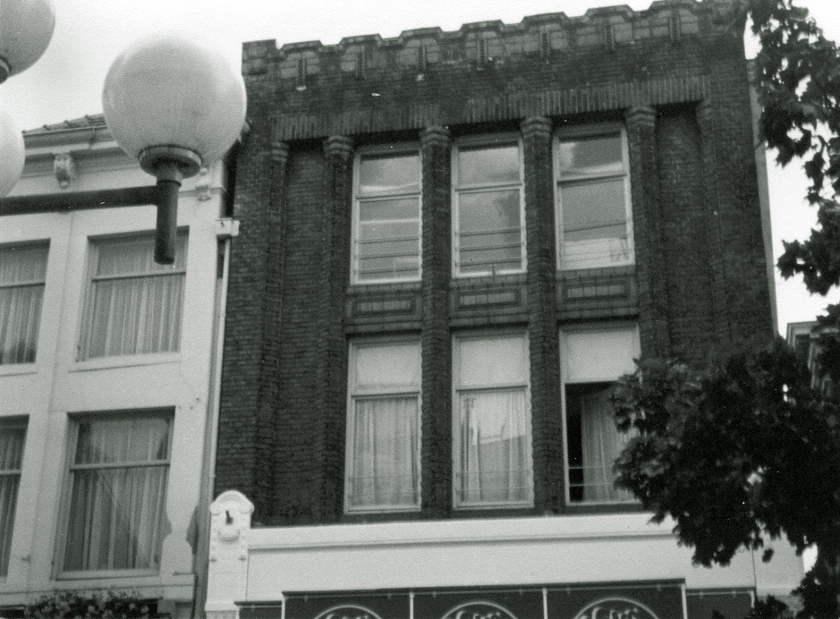 daarvan een iets lager en smaller deel van het achterhuis, en helemaal rechts het nog wat lagere en smallere deel van het huisje Gasseltstraat 4-6. De geleding en vorm van de vensters volgt deze verdeling, duidelijk weergevend dat de bouwlagen in de verschillende bouwdelen naar rechts toe steeds lager zijn. De gevel is wit gepleisterd en heeft een donkere gepleisterde plint. Boven de gevelopeningen op de begane grond zit een doorlopende horizontale voeg in het pleisterwerk, en er zijn twee verticale voegen ter benadrukking van de oorspronkelijke driedeling in verschillende pandjes. Bij de hoek met de voorgevel is er een smalle zone die bij de voorgevel hoort. Deze is op de begane grond een betegeld en daarboven uitgevoerd in baksteen, net als de voorgevel, waarmee het visueel een vierkante kolom op de hoek van het pand lijkt. In het voorhuis is er links op de verdieping een venster met een 4-ruits schuifraam en rechts een met een 6-ruits exemplaar. Boven die laatste is er op de tweede verdieping een laag venster met een 4-ruits schuifraam. In het achterhuis is er op de begane grond links een ingang met een kozijn met kraalprofiel, een recente paneeldeur en een bovenlicht. Rechts daarnaast is er een venster met een recent 4-ruits schuifraam. Helemaal rechts in het achterhuis is er nog een ingang met een kozijn met kraalprofiel, paneeldeur en bovenlicht. Op de verdieping zijn er twee vensters met 6-ruits schuiframen, en op de tweede verdieping zijn er twee lage vensters met 4-ruits schuiframen. In de gevel van het huisje Gasseltstraat nr.4-6 is er op de begane grond links een venster met een enkelruits raam en rechts een ingang met een recente deur en een bovenlicht. Op de beide verdiepingen bevinden zich twee 6-ruits schuiframen. De vensters hebben alle hardstenen lekdorpels en brede middenstijlen. In het voorhuis en het achterhuis hebben de vensterkozijnen kraalprofielen, en in het huisje nr.4-6 is er op de verdiepingen sprake van duivenjager-profielen. Aan de bovenzijde worden alledrie de delen van de gevel afgesloten door een licht geprofileerde gootlijst. Achtergevel:De achtergevel van het pand (of eigenlijk de rechter zijmuur van Gasseltstraat 4-6) is niet zichtbaar, omdat het pand hier wordt begrensd door bebouwing.Ruimtelijke indeling:Onder het voorhuis ligt een kelder over de volle breedte van het pand, die toegankelijk is via een trap links in het achterhuis. De kelder is door een tussenmuur in langsrichting ingedeeld in twee smalle ruimtes. Op de begane grond loopt de winkel door tot aan de achtergevel van het achterhuis. In Gasseltstraat 4-6 bevindt zich een aparte ruimte behorend bij de winkel. Tegen de rechter zijmuur bevindt zich achterin het achterhuis de opgang naar de bovenwoningen, met de toegang vanaf de Gasseltstraat. Volgens een bouwtekening uit 1988 is op de verdiepingen de brandmuur tussen voor- en achterhuis nog aanwezig, evenals de gehele scheidingsmuur tussen het achterhuis en het achterliggende volume. De hoogtes van de begane grond en verdiepingen zijn verschillend in de drie volumes: naar achter toe worden ze lager.Constructies:Bij een opname door de afdeling BAM in 1988 zijn de volgende zaken waargenomen.Het kelderdek bestaat uit troggewelven tussen ijzeren I-balken. De linker zijmuur is niet gemeenschappelijk met het buurpand. Tussen de twee muren bevindt zich ter hoogte van het voorhuis een ca. 20 cm. brede osendrup. In deze zijmuur zijn in het voorhuis restanten van een houtskelet en dichtgezette kaarsnissen aangetroffen. De eerste verdiepingsbalklaag bestaat uit eiken moerbalken en grenen/vurenhouten kinderbinten. In het achterhuis zijn de balklagen enkelvoudig. De bouwtekening uit 1988 toont dat ook in het achterste bouwvolume de balklagen enkelvoudig zijn, maar de tweede verdiepingsbalklaag is getekend met één onderslagbalk halverwege de diepte van het volume. Interieurelementen:Volgens aantekeningen van de afdeling BAM uit de 1990er jaren bevinden zich in de winkel tegeltableaus uit 1917 en andere elementen van het oude winkelinterieur.Erf, bijgebouwen, diversen:Het perceel is geheel bebouwd. | 4 |