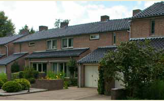 In 1978 kochten de DOCHTERS DER LIEFDE vier nieuwe, tweeaantwee geschakelde woningen, met de achterzijden naar elkaar toegekeerd. Ze delen een binnentuin en enkele gemeenschappelijke ruimten. De huizen in deze wijk zijn ontworpen door architect Th. van den Acker uit Deurne. Er wonen en werken op dit moment elf zusters, van wie sommigen afkomstig zijn van het opgeheven huis in Baak. Ze zetten zich in voor kinderopvang, gaven naailessen aan buitenlandse vrouwen en hadden een opvanghuis. Ze noemen de huizenrij geen klooster, al heeft het kerkrechtelijk wel die status. Het tweelaagse, bakstenen huizenblok valt op door twee naar voren komende garages en een gezamenlijke erker. Pannen zadeldaken op de woningen en lessenaarsdaken op de uitbouwen. De eenvoudige raamindeling en een ommuurd voortuintje zijn kenmerkend voor de gehele wijk. De foto toont het huis aan de Tweede Hervendreef. | 493 |