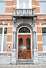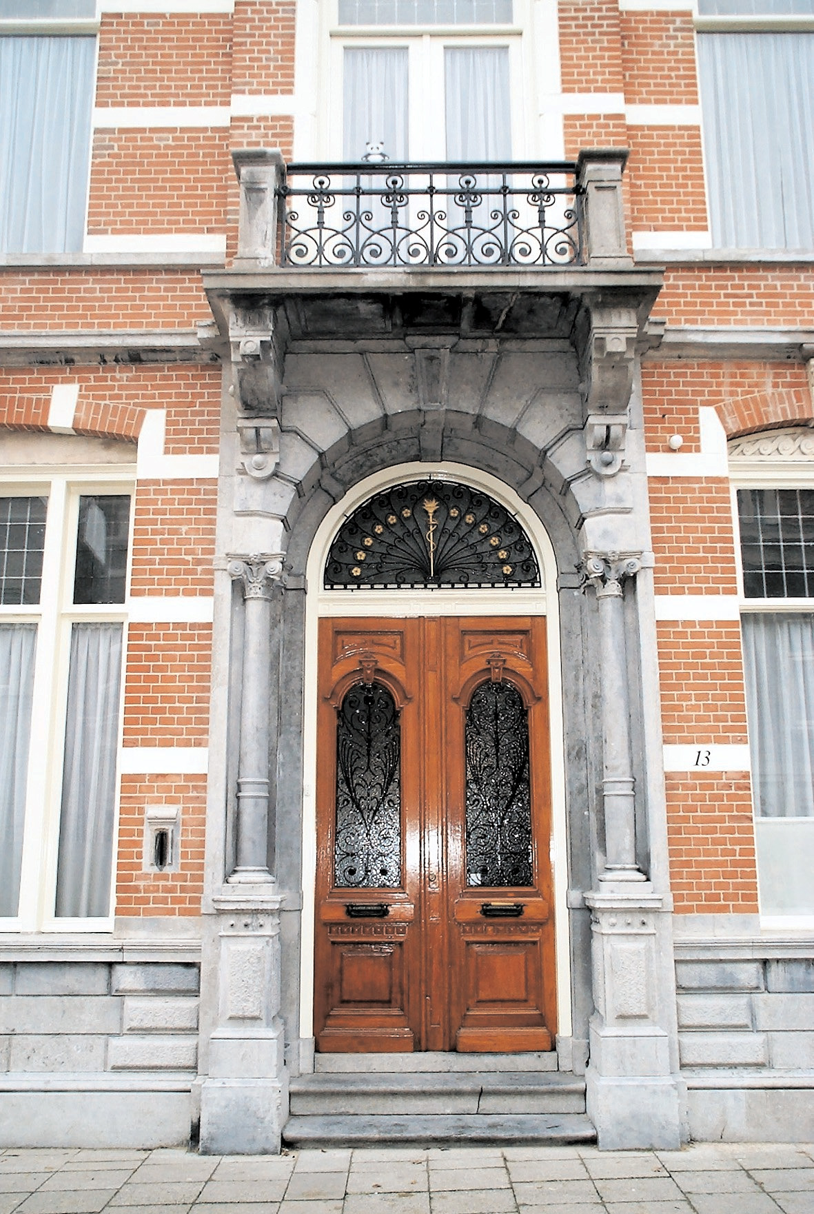 coreerde boogtrommel. De onderdorpel van de vensters op begane grond niveau sluit aan op de zware plint, uitgevoerd in rustica. De vensters op eerste verdiepingsniveau hebben een doorlopende kunststenen onderdorpel die deel uit maakt van de cordonlijst. Alle vensters zijn gekoppeld door middel van een aantal wit ge-schilderde speklagen. De opbouw van de gevel ter linkerzijde van het linkerrisaliet is nagenoeg identiek. De enige afwijking wordt gevormd door het bredere samengestelde venster op begane grondniveau.