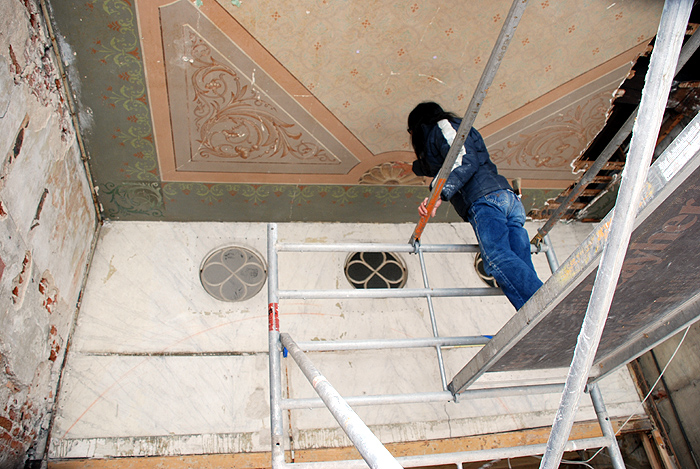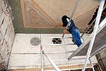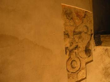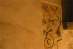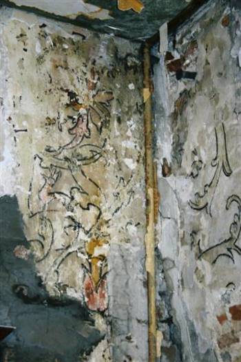 Bijzondere muurschilderingen in een ‘gewoon’ Bosch pandBegin 2005 werd begonnen met het bouwhistorisch onderzoek van Hinthamerstraat 138 in ’s-Hertogenbosch. Het vermoeden bestond dat het winkel/woonhuis nog grotendeels authentiek zou zijn, met name door de nog aanwezige sporenkap en hangkamer. Bij het verwijderen van de voorzetwanden bleek dat het pand nog meer interessante zaken te bieden had.Het pand blijkt inderdaad nog de gehele 15de- en 16de-eeuwse constructie te bezitten. De indeling bestaat uit een voor- en achterhuis, gescheiden door een brandmuur, met rechts in het achterhuis een gang naar een tweede vast achterhuis. Dit tweede achterhuis is ouder dan het hoofdhuis. Het gehele hoofdhuis is onderkelderd. De hangkamer blijkt een 19de-eeuwse insteekverdieping te zijn, mogelijk ter vervanging van een oudere. Oorspronkelijk besloeg de kamer in het achterhuis de hele breedte van het pand. In het begin van de 17de eeuw is de kamer versmald en de gang aangebracht. Hiermee kreeg het pand de huidige, voor Den Bosch kenmerkende, indeling. Naast de interessante jongere interieurafwerking, zoals het behang en de beschilderde 19de-eeuwse plafonds en vloeren zit de grootste verrassing gedeeltelijk achter een dik pakket witkalklagen. Op alle wanden van de achterkamer op de begane grond zit een laatgotische muurschildering van ranken met uitbundige, gestileerde bloemen en enkele subtiel, verscholen beestjes (vosje, haas en hondje). Op de linker zijmuur is tussen de vensters een groot deel van een engel bewaard gebleven met krulharen en een mooie roodgeel gekleurde vleugel. Hoe de schildering op de tegenoverliggende rechter wand –de wand in de huidige gang- eruit ziet is onbekend omdat hierover een tweede schildering is aangebracht. Deze interessante, vroegrenaissanceschildering bestaat uit een grote cartouche met rol- en beslagwerk en een omkaderde, tweeregelige tekst met aan de onder- en bovenzijde in het midden een mannenhoofdje. Ten tijde van deze cartouche waren de overige wanden wit geschilderd Na onderzoek bleek de achterkamer niet de enige ruimte te zijn die beschilderd is geweest. Ook in het voorhuis zijn restanten aangetroffen van een geometrische schildering (mogelijk een fries). En op de verdieping werd op de linker zijmuur van het achterhuis, eveneens tussen de vensters, een restant van een cartouche aangetroffen met ingekerfde tekst. Deze cartouche is echter geheel anders dan op de begane grond en vermoedelijk van latere datum. Ondanks dat er in Den Bosch vaker muurschilderingen worden aangetroffen zijn deze schilderingen uniek te noemen. Zowel door de vorm als de gaafheid. De laatgotische schilderingen lijken banden te hebben met gewelfschilderingen van de Sint Jan. De renaissanceschildering heeft zeer waarschijnlijk een relatie met Antwerpen. Nader onderzoek naar ondermeer de eigenaars en bewoners zal hopelijk meer gegevens aan het licht brengen. De technische staat van de schilderingen verloopt, afhankelijk van de plek op een buiten- of binnenmuur, tussen slecht en goed. Door het enthousiasme en bereidwilligheid van de eigenaar wordt onderzocht of de schilderingen gerestaureerd kunnen worden en in het pand behouden kunnen blijven.