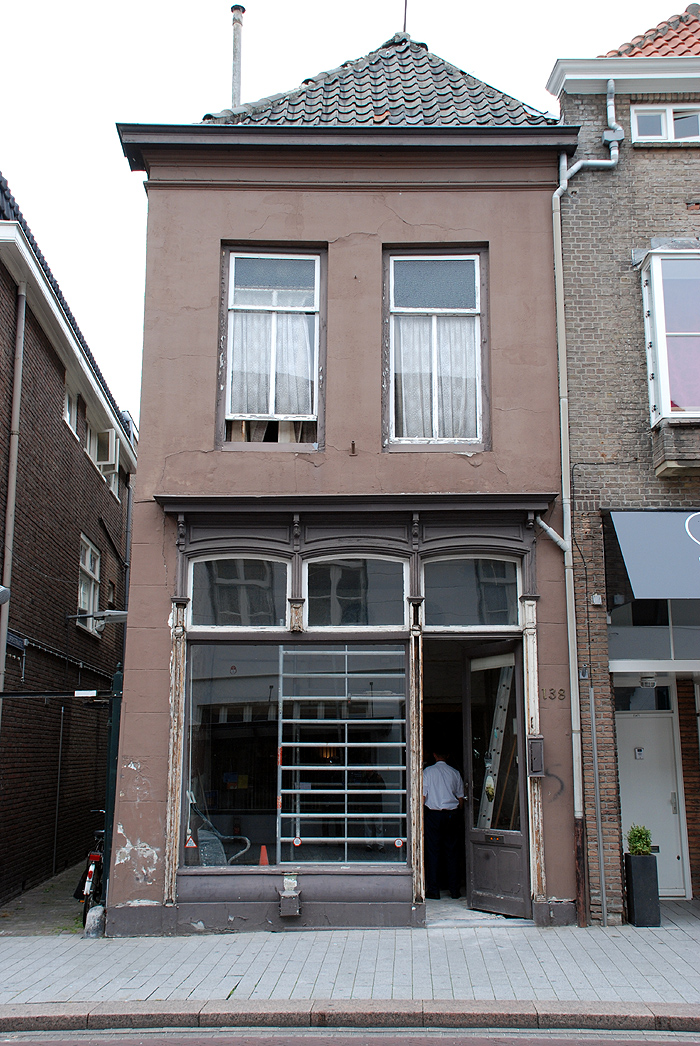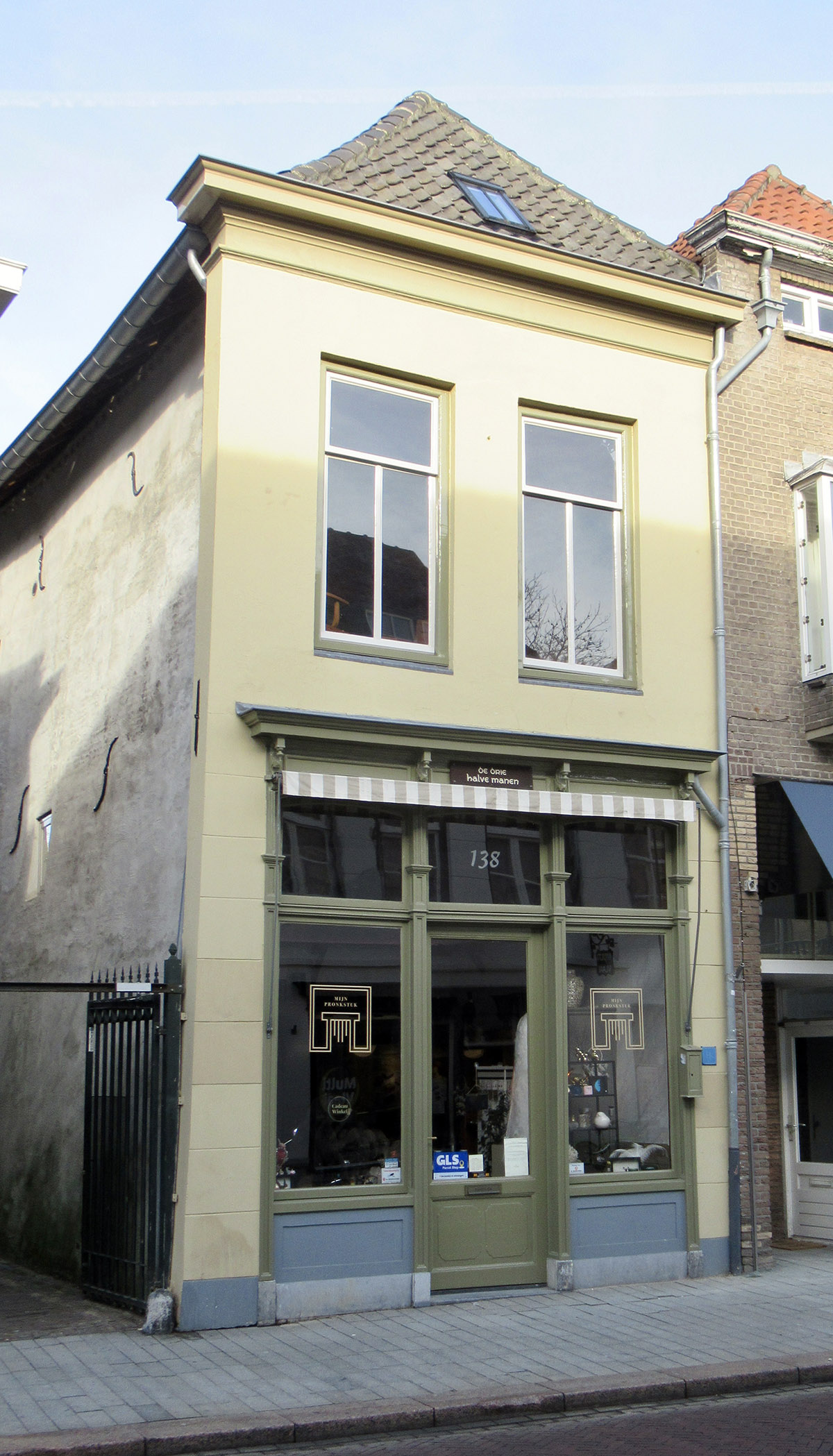 OmschrijvingWoonhuis, gebouwd in de zestiende eeuw. De houtconstructie is gedateerd op circa 1545 (d). Het pand heeft een voor 's-Hertogenbosch gebruikelijk indeling in een voor- en achterhuis, gescheiden door en brandmuur. Rechts in het achterhuis loopt een gang naar een tweede vast achterhuis, dat ouder is dan het hoofdhuis. Het gehele hoofdhuis is onderkelderd. De voorgevel dateert vermoedelijk uit de periode 1820-1840, met een winkelpui uit het begin van de 20ste eeuw. In het voorhuis is een hangkamer aanwezig, aangebracht in 19e eeuw. In het interieur van het voorhuis zijn voornamelijk 19e-eeuwse afwerklagen zichtbaar, waaronder de beschilderde stucplafonds. In het achterhuis is op de bel-etage in de 17e eeuw een binnenwand aangebracht, waardoor de ruimte kleiner is geworden en er een gang is ontstaan. In deze beide ruimten zijn op muurvlakken laatgotische schilderingen aangetroffen. Op de rechter zijwand, die nu een wand van de gang vormt, is een laatgotische schildering aangetroffen, die later (gedeeltelijk) is overschilderd met een renaissance schildering voorstellende een cartouche met tekst: "Mensche vrest godt en soeckt den vrede en doet een aender als ghij wijlt, datmen u dede. Soo wije benijt een anders profijt selden eest dat hij bedijt". In het voorhuis bevinden zich restanten van een (geometrische) schildering. Op de verdieping is op de linker zijmuur van het achterhuis een restant van een cartouche aangetroffen en bevindt zich nog een originele balksleutel.WaarderingHet winkel-woonhuis Hinthamerstraat 138 is van algemeen cultuur- en architectuurhistorisch belang: