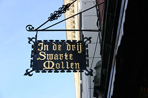 Terug naar De Drie Mollen. Eén van de drie koffiebranderijen van de familie Sweens werd gevestigd in de Hinthamerstraat (thans nummer 192), in het huis dat reeds in 1560 bekend stond onder de naam De Drie mollen. Hoe dit huis aan deze naam is gekomen, is niet bekend; de Middeleeuwse mens gebruikte wel meer fantasienamen om zijn eigen pand bekendheid te geven. De huisnaam werd dus als firmanaam verkozen. Ook het naast het huis gelegen straatje heeft de naam (Achter de Mollen) aan de naam van het huis zelf ontleend.