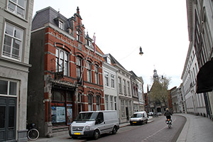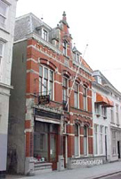 InleidingDe winkel met woonhuis "In de Drij Swarte Mollen" is gelegen aan de noordelijke zijde van de Hinthamerstraat, op de hoek van de steeg "Achter de Mollen". De kern van het pand wordt gevormd door twee oudere, vermoedelijk 17de-eeuwse woonhuizen, die omstreeks 1900 werden verbouwd en één nieuwe gezamelijke voorgevel (met achterliggende travee) kregen, mogelijk naar ontwerp van Ed. Cuypers. Deze gevel vertoont de vo de Neo-Renaissance, met in de winkelpui verwijzingen naar de Art Nouveau. De winkel behoorde bij de in 1818 opgerichte koffiebranderij "In de Drij Swarte Mollen". Deze koffiebranderij lag achter de winkel, aan de Zuidwillemsvaart. Het woonhuis werd later uitgebreid met een tuinkamer en serre aan de noordzijde. In 1963 werd werd een gedeelte van de oorspronkelijke kap gesloopt en vervangen door een plat dak. Ook werd de keuken aan de achterzijde uitgebreid met een aanbouw voor een bijkeuken onder zadeldak.OmschrijvingHet onderkelderde pand heeft een globaal L-vormige plattegrond en telt twee bouwlagen, deels onder plat dak met schilden, gedekt met leien, deels onder zadeldak met verbeterde Hollandse pannen en deels onder plat dak. Dakkapellen boven de voorgevel. De gevels zijn opgetrokken in baksteen, zijgevels bepleisterd, achtergevel gewit. In de voorgevel een hardstenen plint met bossage en hardstenen waterlijsten. Kalkstenen speklagen, aanzet- en sluitstenen. De voorgevel van het pand is asymmetrisch en heeft een driedelige samenstelling. In het midden een smalle gevelpartij, afgesloten door een trapgevel. Aan weerszijden hiervan wordt de voorgevel afgesloten door een kroonlijst. Links een gevelpartij met op de begane grond de winkelpui. Rechts een twee traveeën tellende gevelpartij. De hoofdingang van het woonhuis is gelegen in het midden van de gevel: deze bestaat uit een houten paneeldeur met siertraliewerk en getoogd bovenlicht. Hierboven een wenkbrauwboog. Hierboven een Frans balkon met smeedijzeren sierhek. De vertrekken zijn voorzien van schuiframen, op de begane grond getoogde vensters, ter hoogte van de eerste verdieping rechtgesloten ramen onder segmentbogen. Op de verdieping hebben de schuiframen gedeelde bovenlichten. Links boven de winkelpui een drielichtsvenster met bovenlichten onder een segmentboog. In de trapgevel ter hoogte van de zolder een getoogd schuifvenster. Hieronder een gevelsteen met drie mollen. De winkelpui heeft links een etalagevenster met houten kozijn in Art Nouveau-detaillering. Afgerond bovenlicht met glas-in-lood. Rechts hiervan een beglaasde houten winkeldeur met panelen en houtsnijwerk. Gedeeld bovenlicht. De winkelpui wordt aan de bovenzijde afgesloten door een stalen latei met rozetten. Aan weerszijden van de winkelpui ranke pilasters. Aan de bovenzijde heeft de pui een kalkstenen omlijsting, versierd met kanteelachtige motieven. Boven de winkelpui een smeedijzeren uithangbord.De sober uitgevoerde westelijke zijgevel is bepleisterd. Op de verdieping ter hoogte van een slaapkamer een rechtgesloten venster met een vernieuwd raam. Links hiervan, op de begane grond een rechtgesloten venster met stolpraam en hardstenen dorpel. De eveneens sobere achtergevel kijkt uit op een tuin, oorspronkelijk een binnenplaats tussen winkel/woonhuis en de achterliggende koffiebranderij. De noordelijke achtergevel bestaat sinds de verbouwing van 1963 uit een rechtgesloten gevel. Ter hoogte van de eerste verdieping schuiframen, ter hoogte van de tweede (zolder-)verdieping stolpramen. Op de begane grond gaat de achtergevel schuil achter een éénlaags aanbouw onder plat dak voor de tuinkamer. In de lagere oostelijke achtergevel stolpramen met drieruits bovenlicht. Ook deze gevel gaat ter hoogte van de begane grond schuil achter een éénlaags serre onder plat dak. Het inwendige van het pand toont nog voor een groot deel de dispositie van omstreeks de eeuwwisseling. Het pand heeft een centrale gang, bereikbaar via de ingang van Hinthamerstraat 192, met aan de rechterzijde een salon, een trappenhuis en een zitkamer en de later toegevoegde tuinkamer. Links van de gang liggen de winkel, met daarachter een kantoor. Achter de winkel zijn een kleine hal, de keuken en de eetkeuken gesitueerd. In het interieur is nog een groot aantal oorspronkelijke elementen aanwezig. Hiervan zijn onder meer van belang: in de winkel nog oorspronkelijke kasten en toonbank, in de salon een rijk stucplafond, in het trappenhuis de trap met gietijzeren balusters en rijk versierde houten trappaal met bronzen lamp/beeld, tussen gang en trappenhuis een stucreliëf met puttivoorstelling, in de zitkamer een schoorsteenmantel, paneellambriseringen, paneeldeuren en geprofileerde deuromlijstingen, in de keuken een houten schouwkap en gietijzeren haardplaat met voorstelling, siertegels. WaarderingHet pand "In de Drij Mollen", bestaande uit een winkel en een woonhuis, is van algemeen belang. Het pand bezit cultuurhistorische waarde als bijzondere uitdrukking van een sociaal-economische ontwikkeling: het vormt als winkel/woonhuis behorend bij de koffiebranderij "de Drie Mollen" een herinnering aan een voor de stad 's-Hertogenbosch belangrijke tak van de industrie. Het pand heeft architectuurhistorische waarde vanwege de stijl: een Neo-Renaissance vormentaal met verwijzingen naar de Art Nouveau. Voorts is het van belang vanwege de rijke detaillering en het materiaalgebruik. Het pand heeft ensemblewaarde vanwege de bijzondere betekenis van dit karakteristieke pand voor het aanzien van de Hinthamerstraat. Het pand is tot slot van belang vanwege gaafheid, met name van het nog grotendeels authentieke winkel- en woonhuisinterieur. |