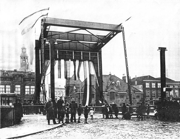 De Bosschenaren namen dat niet en gooiden bij hem tot tweemaal toe de ruiten in. Het Bossche stadsbestuur greep in beide gevallen in.Het pand, waarin nu de oudere gevelsteen zit, werd omstreeks 1890 gebouwd door de firma Coppens, handelaren in wijnen en destillateurs. In het hoekpand was de destilleerderij gevestigd. In 1922 kwam de familie Grimm in de gebouwen. Nog steeds handelt men er in wijnen en gedestilleerde drank. Er worden verschillende soorten bier verkocht. De Bossche Opkikker vindt er zijn oorsprong.