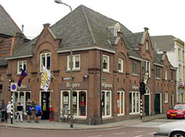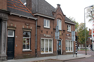 BeschrijvingAlgemeen:Het eclectische gebouw is omstreeks 1900 gerealiseerd op een trapeziumvormig perceel op de hoek van de Hinthamerstraat en de Zuid-Willemsvaart. Het pand omvat drie niveau's te weten een begane grond, een eerste verdieping en een zolder onder een met gesmoorde kruispannen gedekt schilddak. De gevels van het pand zijn in kruisverband gemetseld. Het pand is aan het einde van de twintigste eeuw stevig verbouwd waarbij nagenoeg alle oorspronkelijke vensters in de gevels zijn vervangen en veel muurwerk is vernieuwd.Gevel Hinthamerstraat:De gevel aan de Hinthamerstraat is een symmetrische lijstgevel met een middenrisaliet dat wordt voorzien is van een Vlaamse gevel met een tuit en schouderstukken die zijn afgedekt met hardstenen dekstenen. De gevel en het risaliet hebben hoekpilasters met een hardstenen basement en kapiteel, de pilasters van het risaliet gaan over in een rondboog. De gehele gevel is voorzien van een bakstenen plint. Het middenrisaliet is op de begane grond en op de eerste verdieping voorzien van een gevelopening onder een steens segmentboog. Op de begane grond bevindt zich een vernieuwde deur in een kozijn op hardstenen neuten, op de eerste verdieping bevindt zich een vernieuwd venster met een tweeruits vensterindeling. Boven de deur is een (mogelijk vernieuwde) gevelsteen ingemetseld die afkomstig is uit het middeleeuwse huis ‘Het kasteel van Helmond' dat op dit perceel heeft gestaan. Het overige muurwerk in de gevel is grotendeels vernieuwd. Op de begane grond bevinden zich aan weerszijden van het risaliet een modern, 3-ruits etalagevenster onder een steens rollaag. De vernieuwde vensters op de eerste verdieping bevatten twee draaiende delen. Ter hoogte van de balklaag boven de begane grond bevinden zich een acht gesmede balkankers. Deze ankers zijn geplaatst in een (oorspronkelijke) lijst van siermetselwerk, bestaande uit drie rechtop geplaatst stenen, gevolgd door drie stenen op hun plat. De gevel is aan de bovenzijde afgesloten met een lijst van siermetselwerk en een vernieuwde, geprofileerde bakgoot.Gevel Zuid-Willemsvaart:De voorgevel aan de Zuid/Willemsvaart is symmetrisch van opzet en bestaat uit zeven traveeën, elk met één venster as en van elkaar gescheiden door een gemetselde pilaster. De middelste travee is uitgevoerd als Vlaamse gevel in de vorm van een tuitgevel met schouderstukken, afgedekt met hardstenen dekstenen. In de middenas bevindt zich een dubbele deur in een kozijn met halfrond bovenlicht. Het vernieuwde venster op de eerste verdieping | 1 |
