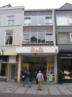 tusschen beide loopende, ex alio, aan de overige dochters van genoemden Alard van Bree, zijnde Willelma, echtgenoote van Jan Gieliszn en Johanna, de huisvrouw van Arnold Francken. In 1542 (Reg. n° 162 f. 48) kocht Joost van Ouwen Joostzn van haar het huis de Pauw, dat toen gezegd werd te staan tusschen de herberg In de roypoort, toebehoorende aan Jacob die Wolff, ex uno en het huis van Dirkje weduwe van Rover Goijartszn en hare kinderen ex alio en zich achterwaarts uit te strekken tot aan de Dieze; hij verkocht het in 1561 (Reg. n° 213 f. 284 vso) aan Aerdt de Raet Eliaszoon, die het 12 Mei 1565 (Reg. n° 213 f. 284 vso) verkocht aan Willem van der Meer, zoon van Dierck Reynderszn en man, eerst van Aelbertken Aertsdr van Vladeracken 7), daarna van Elisabeth, dochter van Laureyns Pelgrom de Bye en Geertruid Wynandts van Resandt; den 8 April 1573 werd het gerechtelijk uitgewonnen; toen kocht genoemde Joost van Ouwen het weder in, waarna deze het 14 Juni 1574 (Reg. n° 223 f. 178 vso) andermaal verkocht, nu aan den pannicida Arnd Pels, zoon van Cornelis Arndszn en man van Aleid, dochter van Goijart van den Spoirdonck. In 1598 was daarvan eigenaar Nicolaas, zoon van Adriaan Goijartszn en in 1612 de wollenlakenkooper Jan Wouterszn van Esch. Naast dit huis liep oudtijds, uit voormelde omschrijvingen is zulk reeds gebleken, een straatje, dat in eene Bossche Schepenakte van 13 December 1611 (Reg. n° 283 f. 145 vso) gezegd werd te zijn: een ganck, dair men doir gaet van de Hijntemerstraet tot den Convente van de Predicaren ende den watere, die Dieze genoempt, om welk laatste reden het in eene Bossche Schepenakte van 1612 (Reg. n° 283 f. 649) gezegd werd een waterstraatje te zijn; in dit straatje stonden zes huisjes of kamers, zooals blijkt uit eene Bossche Schepenakte van 16 Juni 1583 (Reg. n° 230 f. 72 vso), waarbij Maria