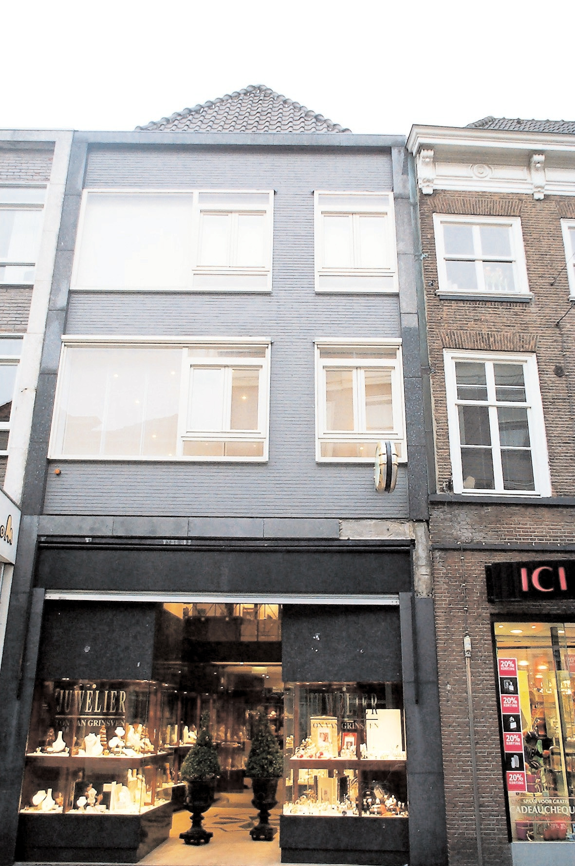 BeschrijvingAlgemeen:Het in oorsprong viertiende- of vijftiende-eeuwse pand op een rechthoekig grondplan is gelegen op een gelijkvormig perceel aan de noordzijde van de Hinthamerstraat. Het voormalige woonhuis omvat vijf niveau’s: kelder, begane grond, twee verdiepingen en een zolder. Oorspronkelijk had het pand een indeling met vast voor- en achterhuis, gescheiden door een brandmuur. Deze indeling is nog zichtbaar in de kelders. Beide kelders zijn voorzien van een tongewelf, het gewelf van de kelder onder het achterhuis deels is gesloopt. De ingang tot de kelder onder het achterhuis is dichtgezet. Het met gesmoorde Hollandse pannen gedekte zadeldak heeft een wolfeinde aan de straatzijde. In de tweede helft van de twintigste eeuw is het pand voorzien van een nieuwe voorgevel. Omstreeks 2000 heeft er een grote verbouwing plaats gevonden waarbij delen van de balklagen zijn verdwenen en de balklagen in het achterhuis zijn opgehoogd, de kinderbinten zijn hierbij vernieuwd.Voorgevel:Deze twintigste-eeuwse voorgevel is in halfsteensverband gemetseld. Op begane grondniveau bevindt zich een winkelpui die de gehele breedte van de gevel beslaat. Het eerste en tweede verdiepingsniveau is grijs geschilderd en omlijst met een strook kunststeen. Beide niveau’s hebben twee moderne, samengestelde vensters. Het linkervenster is een keer zo breed als het rechtervenster.Linkerzijgevel:Uit de gegevens in het werkdossier van de gemeente ‘s-Hertogenbosch, afdeling BAM, is op te maken dat de linkerzijgevel middeleeuws muurwerk bevat. In het voorhuis zijn op eerste verdiepingsniveau enkele vijftiende- maar mogelijk zelfs veertiende-eeuwse muurschilderingen bewaard gebleven. Deze schilderingen zijn ook op de brandmuur bewaard gebleven.Rechterzijgevel:Uit de gegevens in het werkdossier van de gemeente ‘s-Hertogenbosch, afdeling BAM, is op te maken dat de rechterzijgevel middeleeuws muurwerk bevat. In het voorhuis zijn op eerste verdiepingsniveau enkele vijftiende-, mogelijk zelfs veertiende-eeuwse, muurschilderingen bewaard gebleven.Achtergevel:De achtergevel is vanaf de openbare weg niet in het zicht. Op foto’s in het werkdossier van de gemeente ‘s-Hertogenbosch, afdeling BAM, is te zien dat het een bepleisterde lijstgevel met twee vensterassen betreft. Op het begane grondniveau gaat de gevel schuil achter een moderne serre. De vensters op eerste verdiepingsniveau zijn negentiende-eeuwse schuifvensters. De vensters op de tweede verdieping hebben | 1 |
