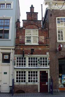 Een pandje met een lange historie, spraakmakender dan de omvang op het eerste gezicht doet vermoeden. Tot 1613 vormde het één geheel met nummer 55, de Gulden Schoen. Het pand deed dienst als etablissement, water en vuurhuis en als echt Bosch bierhuis of 'Jenevercafé'. In de woelige dagen van de geuzenopstand bevond zich in het pand bovendien een schuilkeldertje voor de 'papen', zo vertelt ons een legende. Over de gevel verspreid ziet u natuurstenen elementen. Omstreeks 1780 woonde de Bossche republikein Willem Hubert hier. Hij richtte er de eerste Bossche sociëteit "Eindelijk uit d'onderdrukking" op.