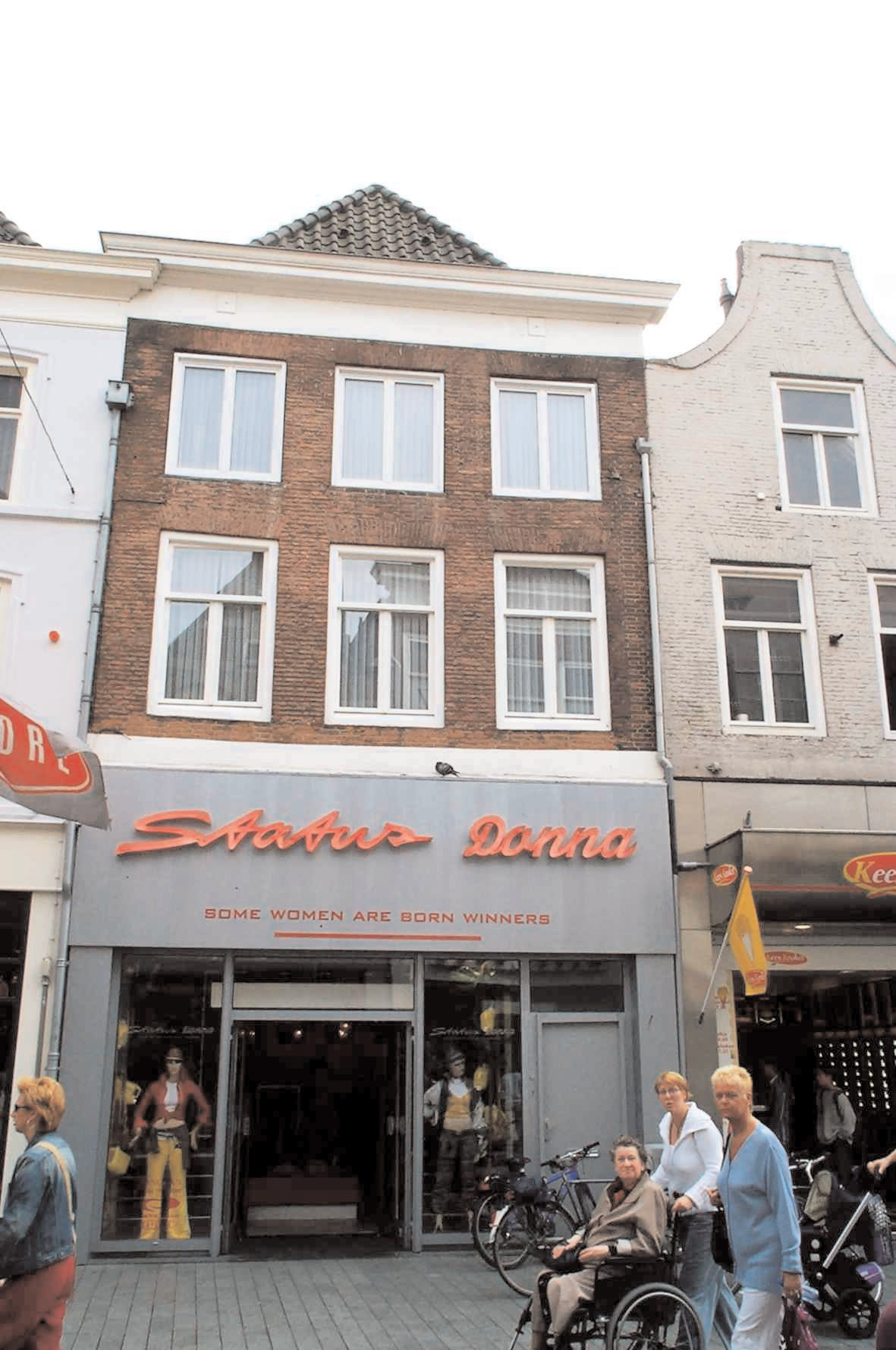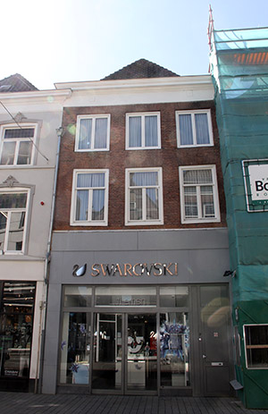 De 19de-eeuwse lijstgevel (XIXA) is voorzien van een moderne pui (XXd), waarachter mogelijk oudere elementen zijn weggewerkt; net boven de pui bevinden zich twee muurankers. De oorspronkelijk gepleisterde gevel hierboven is tegenwoordig als schoon metselwerk met handvormstenen in staand verband uitgevoerd. De vensteropeningen op de eerste- en de zolderverdieping zijn voorzien van anderhalfsteens strekse bogen.