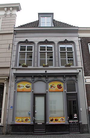 Achter de gepleisterde voorgevel gaat een huis schuil met een nog kenmerkende indeling met een voor- met vast achterhuis dat tot stand is gekomen in de 15de en 16de eeuw. Het achterhuis is omstreeks 1420 opgetrokken met toen nog een onbebouwd voorerf aan de straat. In het midden van de 16de eeuw werd ook dit voorerf bebouwd en het achterhuis gemoderniseerd. De bebouwingsgeschiedenis op het perceel gaat echter veel verder terug; tijdens het bouwhistorisch onderzoek zijn restanten aangetroffen van muurwerk uit de 13de en 14de eeuw. De oorspong van de bebouwing ligt in een dertiende-eeuws dwarshuis waarvan de voorgevel circa negen meter achter de huidige rooilijn is gelegen.