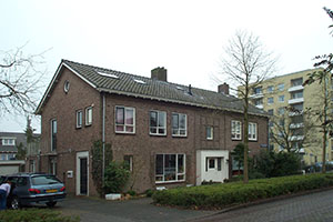Dubbele woning. Asymmetrische gevelindeling, met een opvallende metselwerk decoratie boven de deurpartij van de voorgevel op de begane grond en devensters op de eerste verdieping. De woningen zijn voorzien van een zadeldak. Aan de achterzijde zijn de woningen uitgebouwd met een serre.