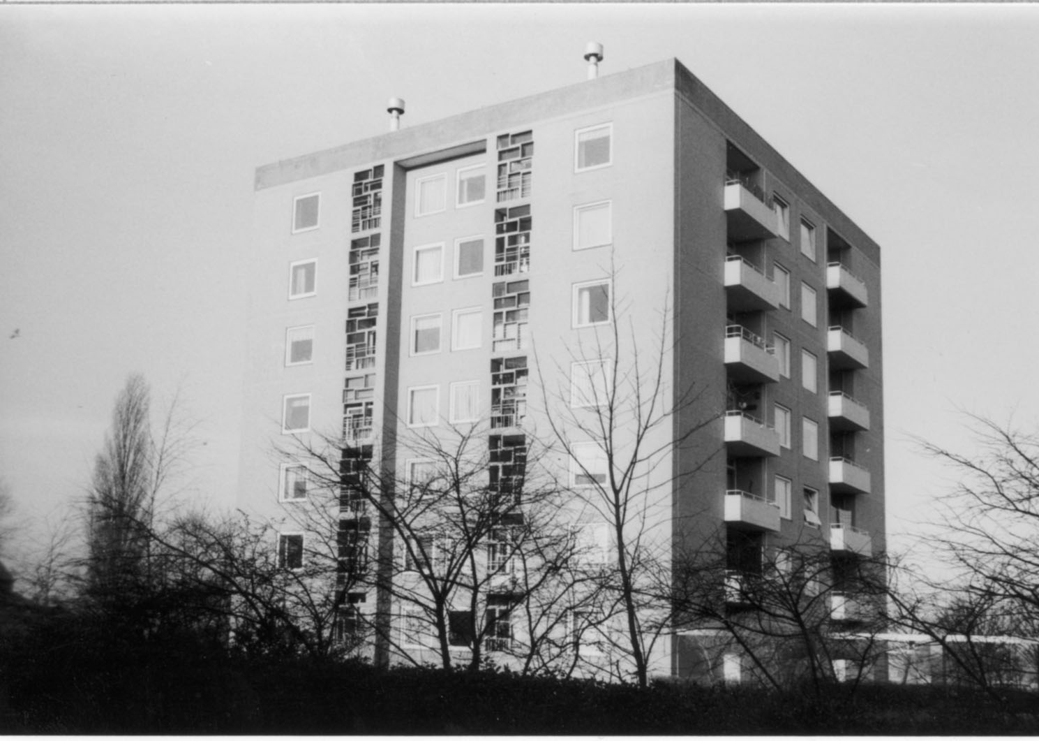 Flat gebouw met vijf woonlage, met vijf traveeën aan de Hertogin Johannastraat. Het gebouw is bekend onder de naam: 'Zuider Flat'. Van het originele concept; betonskeletbouw met baksteen schild, is na de renovatie niet veel meer zichtbaar. Bij de laatste renovatie werd het gebouw gepleisterd.