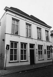 afgesloten door een hoofdgestel met architraaf, gepleisterd fries en een houten kroonlijst. Zijgevels:De linker zijgevel aan het Kruisbroedersstraatje is geheel gepleisterd. In het linker deel van de gevel zitten op de begane grond drie vensters met 6-ruits schuiframen en op de verdieping vier vensters met 6-ruits schuiframen. Het rechter deel van de gevel is blind uitgevoerd. Ter hoogte van de eerste verdiepingsvloer en zoldervloer zijn enkele staafankers en grote X-vormige ankers zichtbaar. Op de hoek met de achtergevel is een oude kanonskogel ingemetseld. De gevel wordt afgesloten door een eenvoudige daklijst.De rechter zijgevel wordt grotendeels aan het zicht onttrokken door het rechter buurpand. Tegen deze gevel loopt een overbouwde steeg. Op een verbouwingstekening uit 1978 staat deze gevel als volgt weergegeven: Op de begane grond is één venster met 12-ruits raam. Op de verdieping is één rond venster en een 4-ruits raam met bovenlicht, beide ten behoeve van het trappenhuis. Achtergevel:De achtergevel van het rechter pand is niet zichtbaar vanuit de openbare ruimte. De achtergevel van het linker pand wordt door de nieuwe aanbouw met topgevel aan het zicht onttrokken. Op bouwtekeningen uit 1979 zijn beide gevels als volgt weergegeven: De achtergevel van het rechter pand heeft op de begane grond twee vensters met een 6-ruits raam en rechts hiervan een ingang. Vanwege de kelder ligt de begane grond vloer wat boven het maaiveld. Op de eerste verdieping heeft de gevel twee vensters met 6-ruits raam en één venster met een 3-ruits raam. De gevel wordt afgesloten door een eenvoudige daklijst. Deze wordt in het midden onderbroken door een dakkapel met een venster met 6-ruits raam. De oude achtergevel van het linker pand is niet meer zichtbaar. Deze achtergevel had links en rechts op de begane grond een ingang. Centraal hier tussenin zat een venster met T-raam. Op de verdieping waren twee vensters met 6-ruits schuifraam met een brede middenstijl. Ter hoogte van de verdiepingsvloeren zaten S-vormige ankers. | 3 |